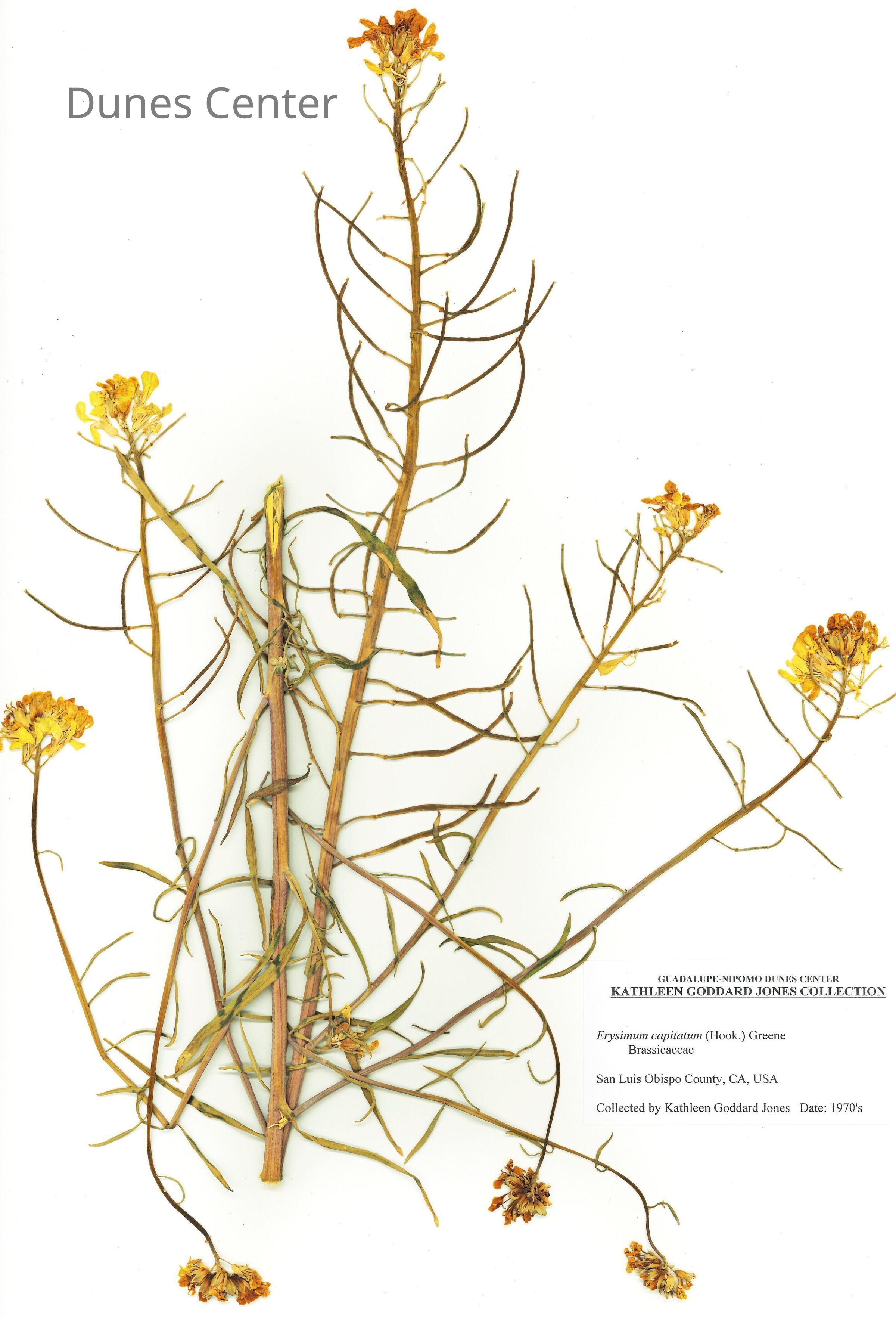 Common Names: Sanddune Wallflower, Western Wallflower Scientific Name: Erysimum capitatum (Hook.) Greene Family: Brassicaceae San Luis Obispo County, CA, USA Collected by Kathleen Goddard Jones Date: 1970'sCollection