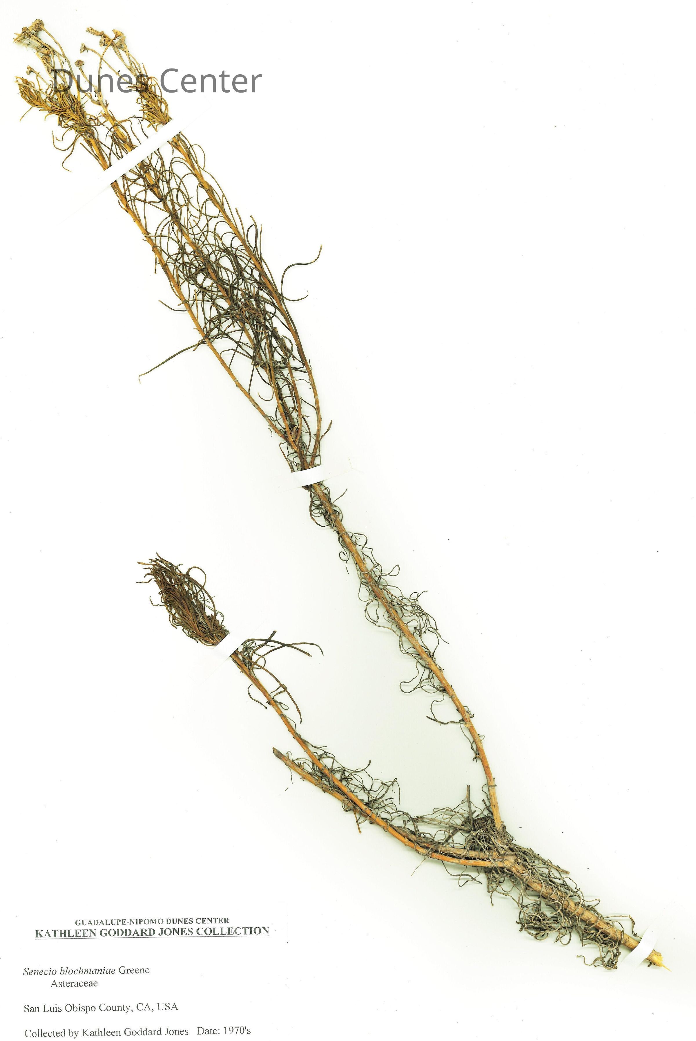 Common Name: Dune Ragwort Scientific Name: Senecio blochmaniae Greene Family: Asteraceae San Luis Obispo County, CA, USA Collected by Kathleen Goddard Jones Date: 1970'sCollection