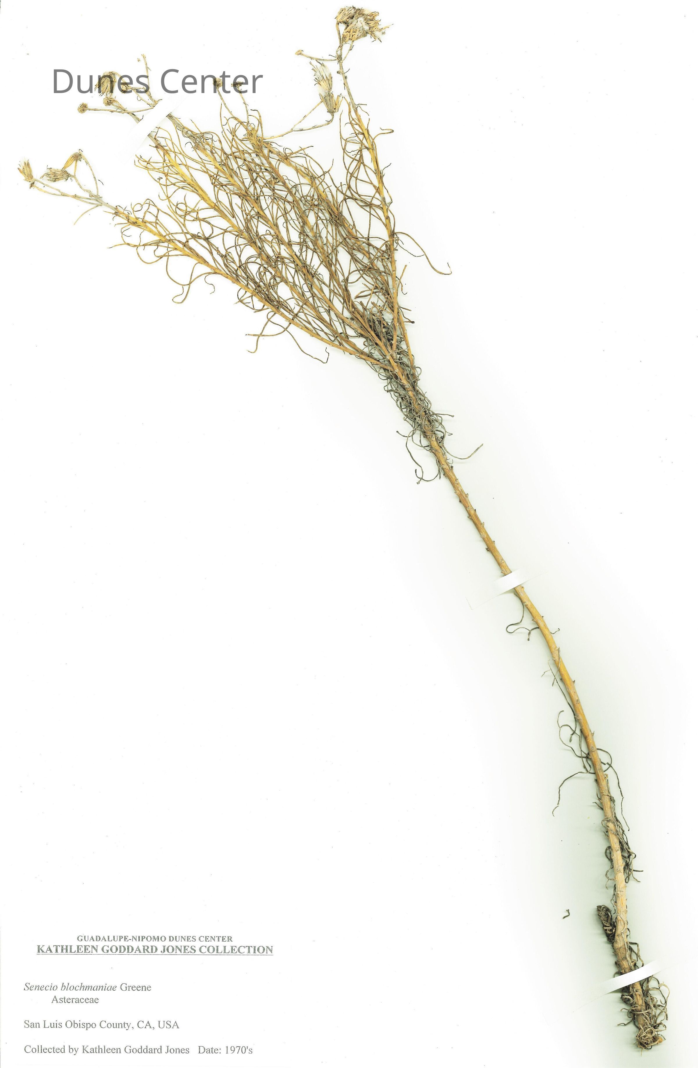 Common Name: Dune Ragwort Scientific Name: Senecio blochmaniae Greene Family: Asteraceae San Luis Obispo County, CA, USA Collected by Kathleen Goddard Jones Date: 1970'sCollection