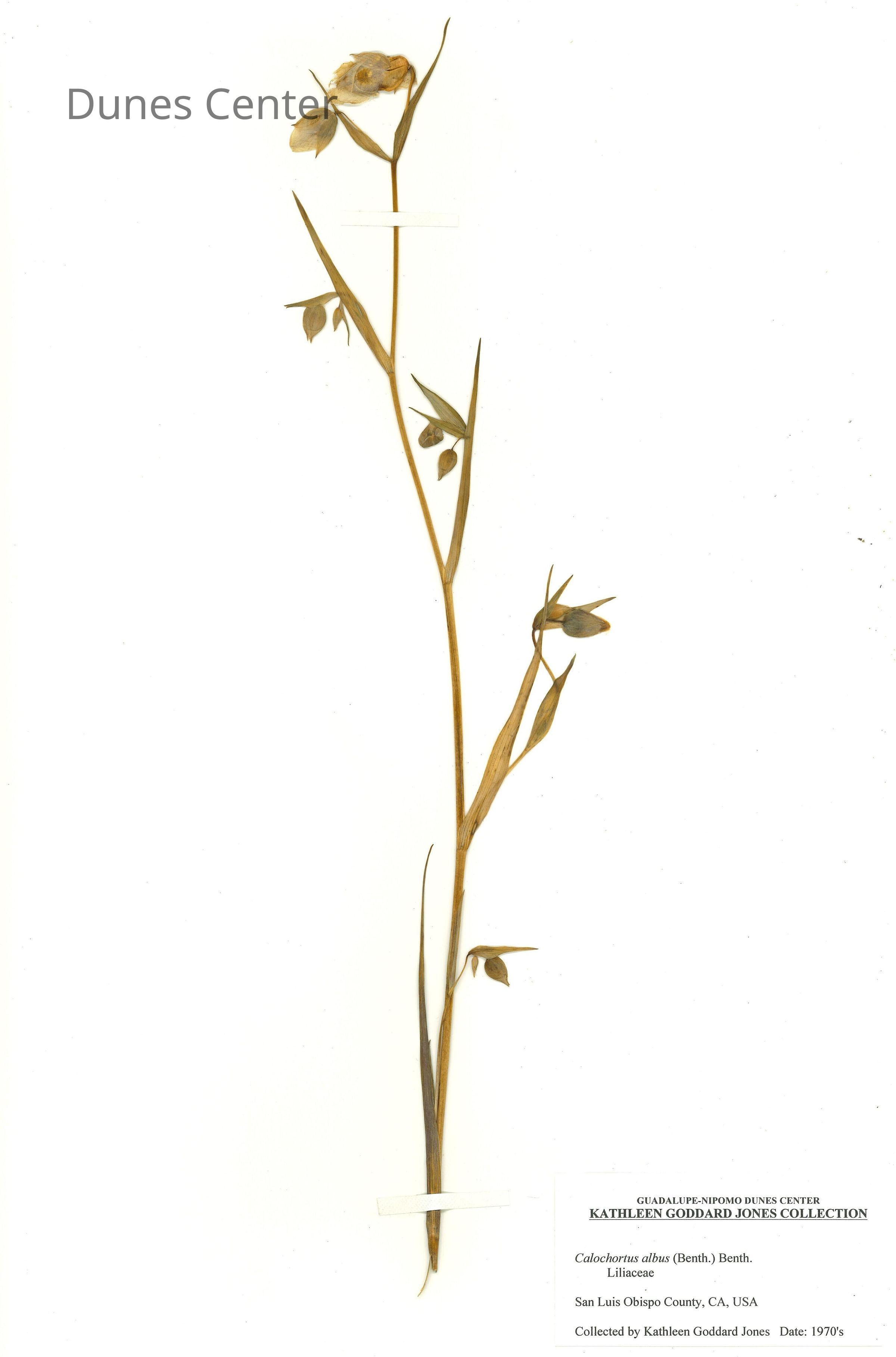 Common Names: White Fairy Lantern, White Globe Lily Scientific Name: Calochortus albus (Benth.) Douglas ex Benth. Family: Liliaceae San Luis Obispo County, CA, USA Collected by Kathleen Goddard Jones Date: 1970'sCollection