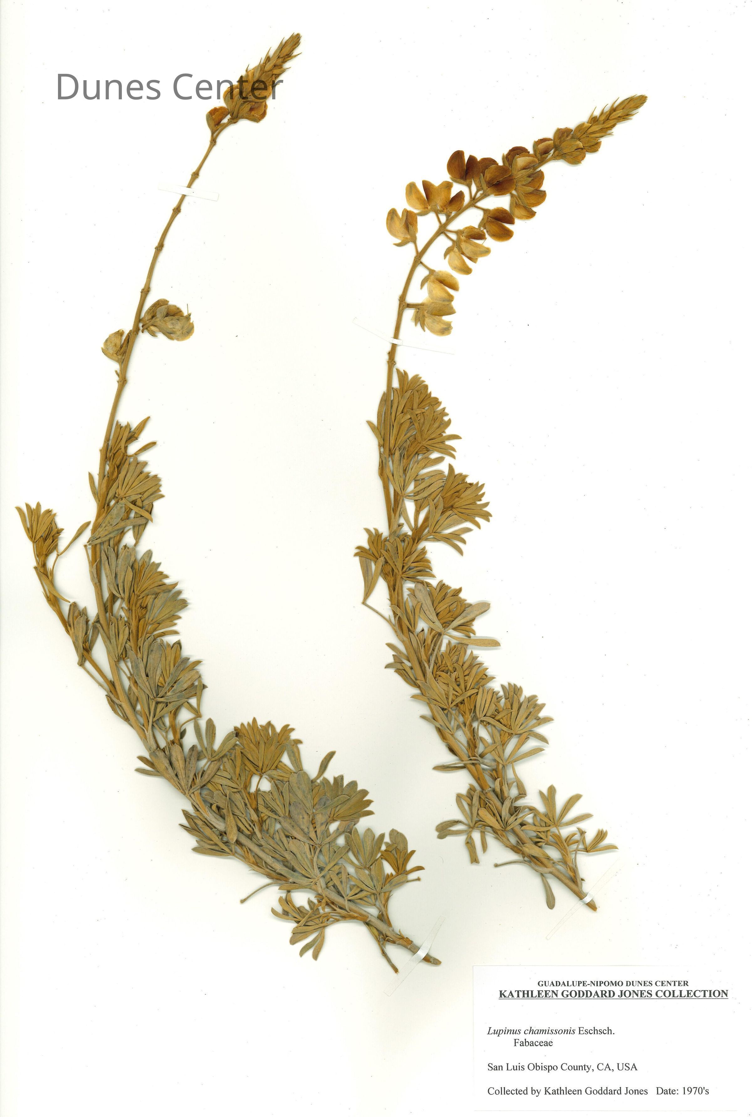 Common Names: Beach Blue Lupine, Chamisso Bush Lupine, Dune Bush Lupine Scientific Name: Lupinus chamissonis Eschsch. Family: Fabaceae San Luis Obispo County, CA, USA Collected by Kathleen Goddard Jones Date: 1970'sCollection