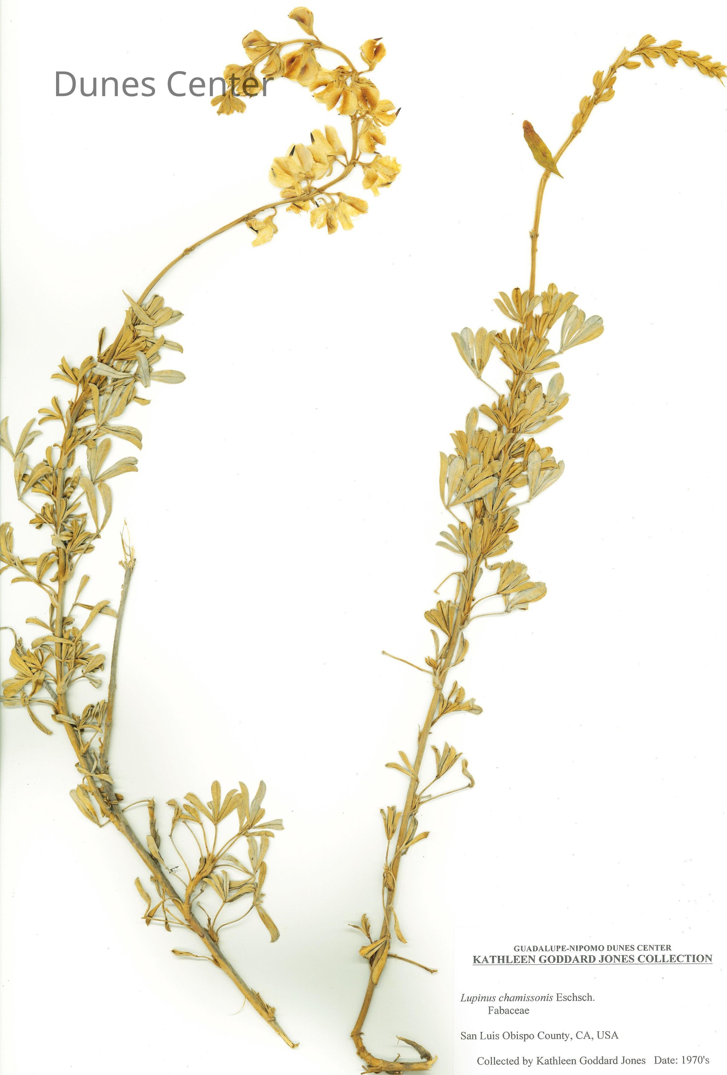 Common Names: Beach Blue Lupine, Chamisso Bush Lupine, Dune Bush Lupine Scientific Name: Lupinus chamissonis Eschsch. Family: Fabaceae San Luis Obispo County, CA, USA Collected by Kathleen Goddard Jones Date: 1970'sCollection