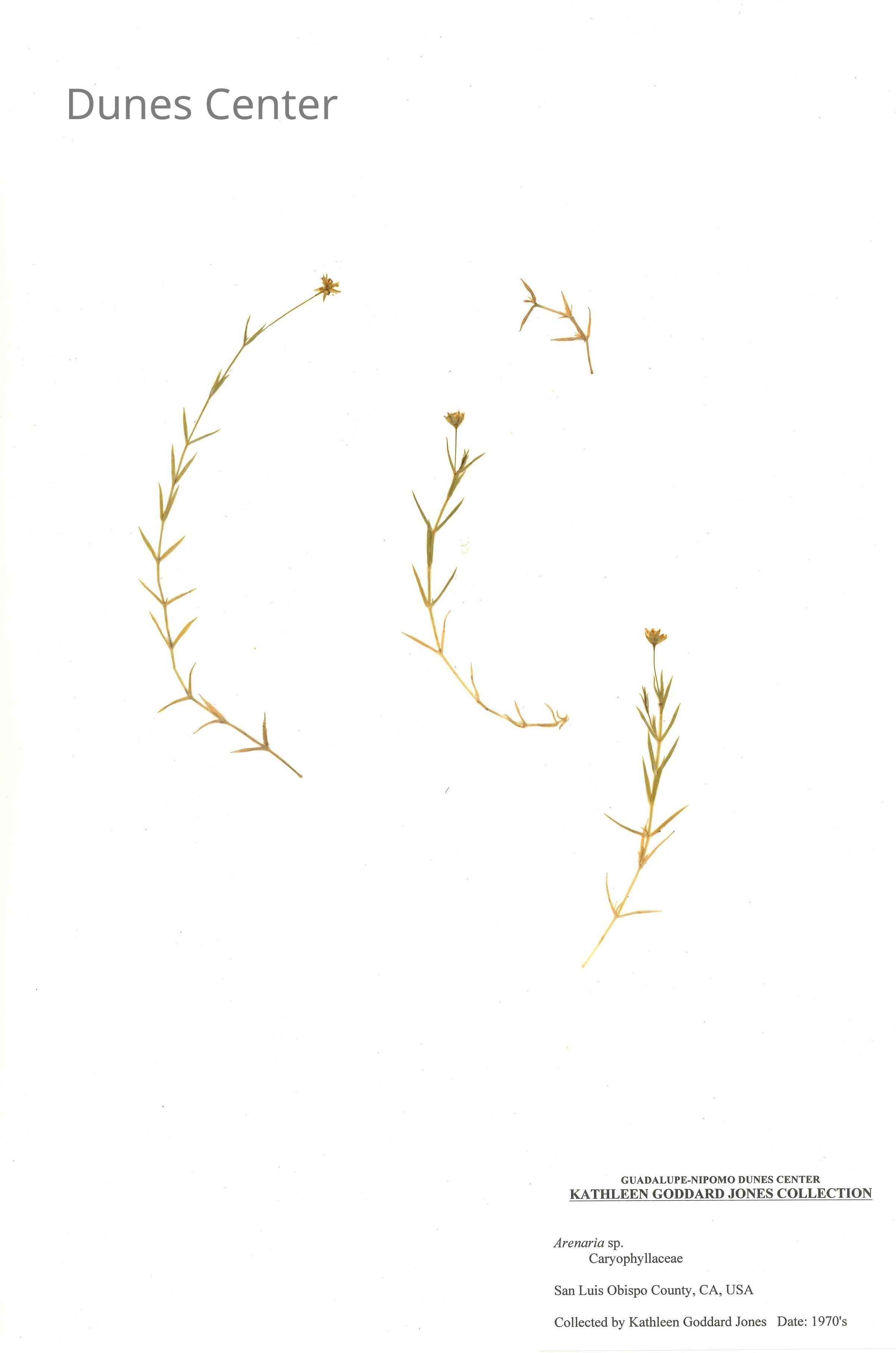 Common Name: Sandwort Scientific Name: Arenaria sp. Family: Caryophyllaceae San Luis Obispo County, CA, USA Collected by Kathleen Goddard Jones Date: 1970'sCollection