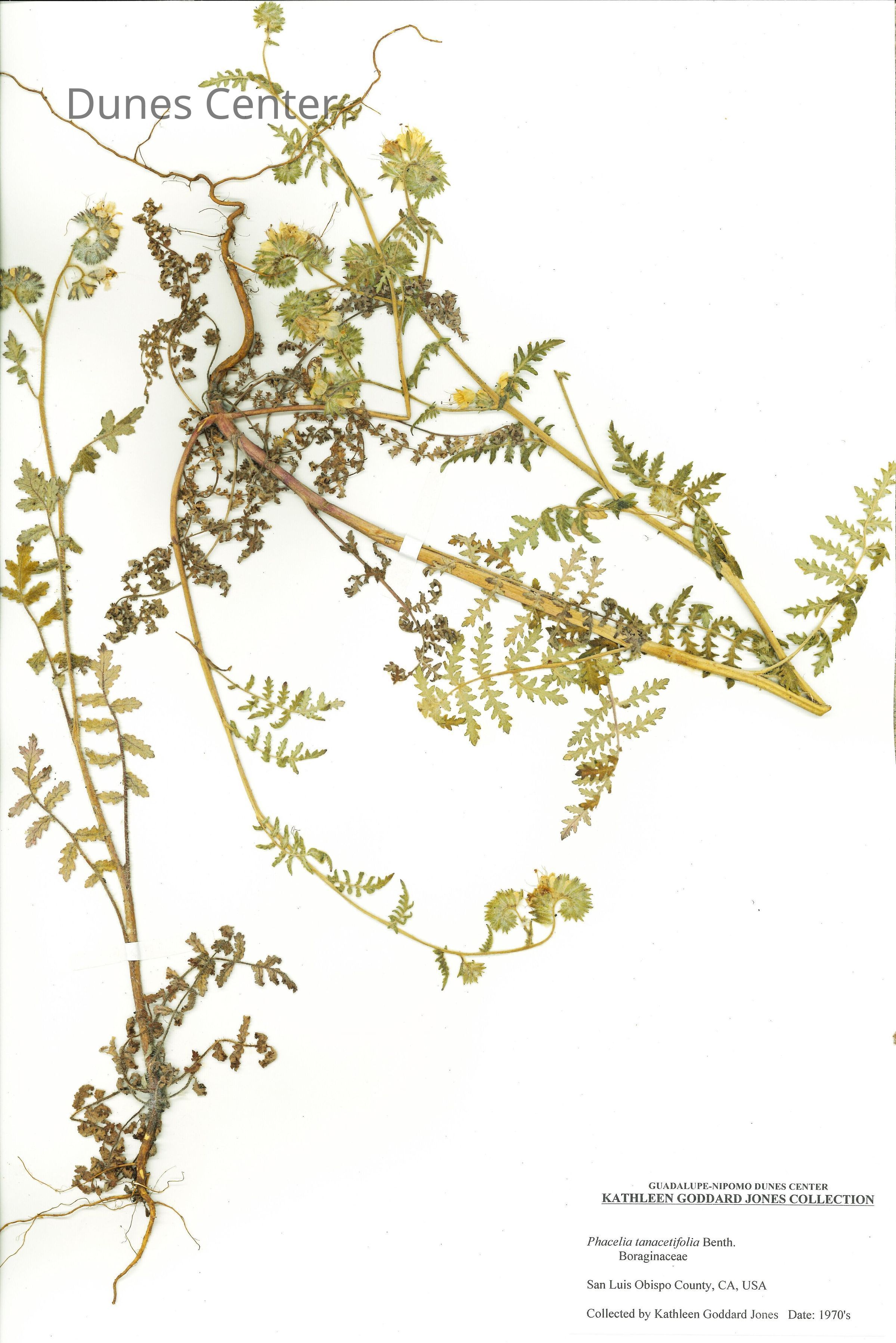 Common Name: Lacy Phacelia Scientific Name: Phacelia tanacetifolia Benth. Family: Boraginaceae San Luis Obispo County, CA, USA Collected by Kathleen Goddard Jones Date: 1970'sCollection