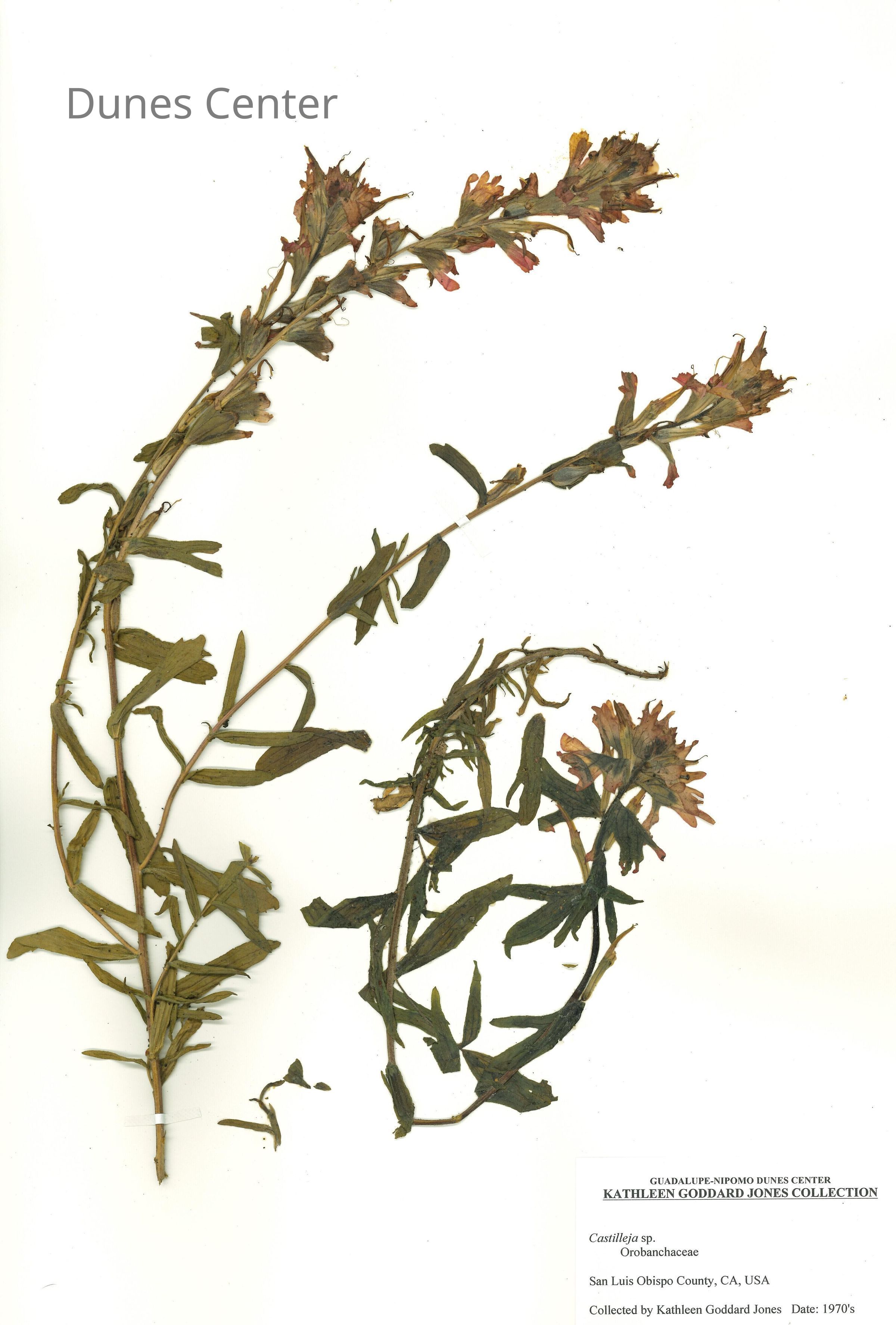 Common Name: Indian Paintbrush Scientific Name: Castilleja sp. Family: Orobanchaceae San Luis Obispo County, CA, USA Collected by Kathleen Goddard Jones Date: 1970'sCollection