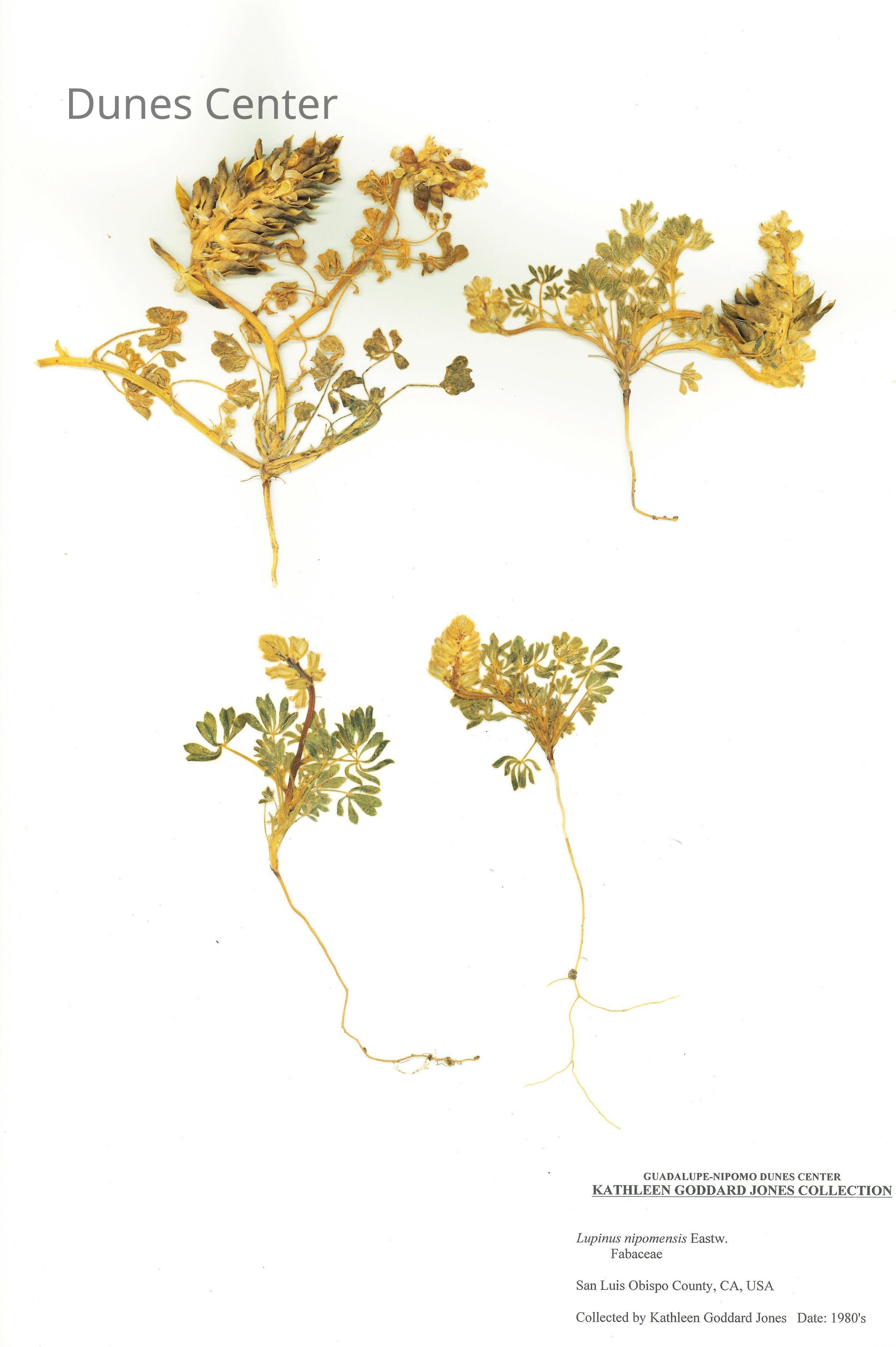 Common Name: Nipomo Mesa Lupine Scientific Name: Lupinus nipomensis Eastw. Family: Fabaceae San Luis Obispo County, CA, USA Collected by Kathleen Goddard Jones Date: 1970'sCollection