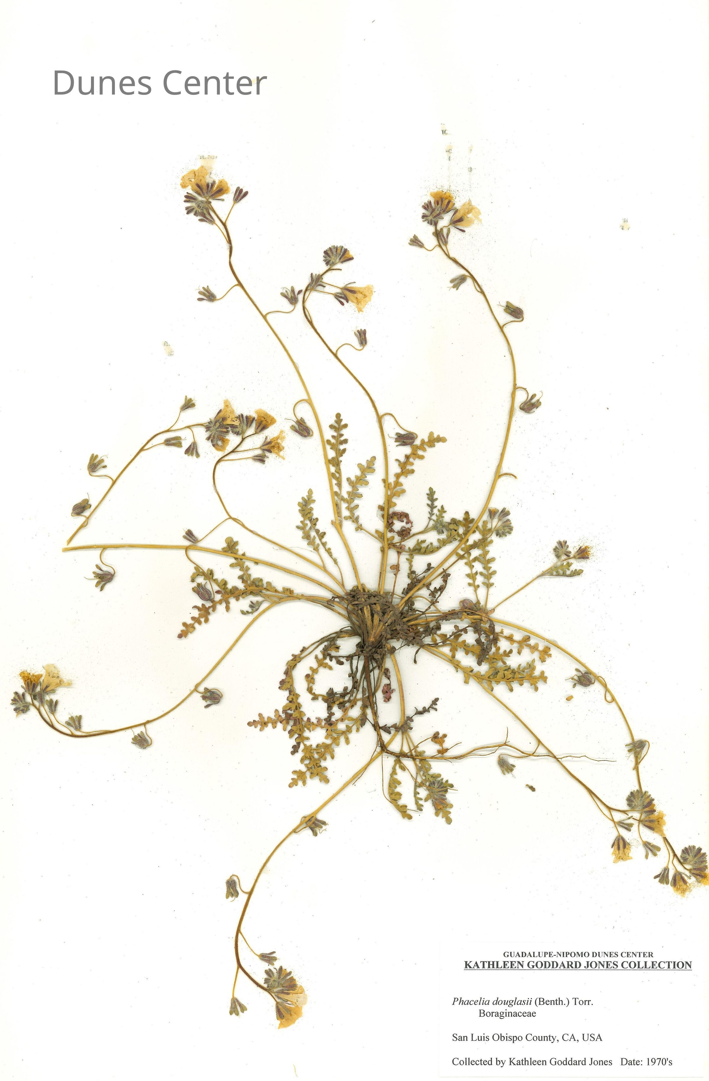 Common Name: Douglas' Phacelia Scientific Name: Phacelia douglasii (Benth.) Torr. Family: Boraginaceae San Luis Obispo County, CA, USA Collected by Kathleen Goddard Jones Date: 1970'sCollection