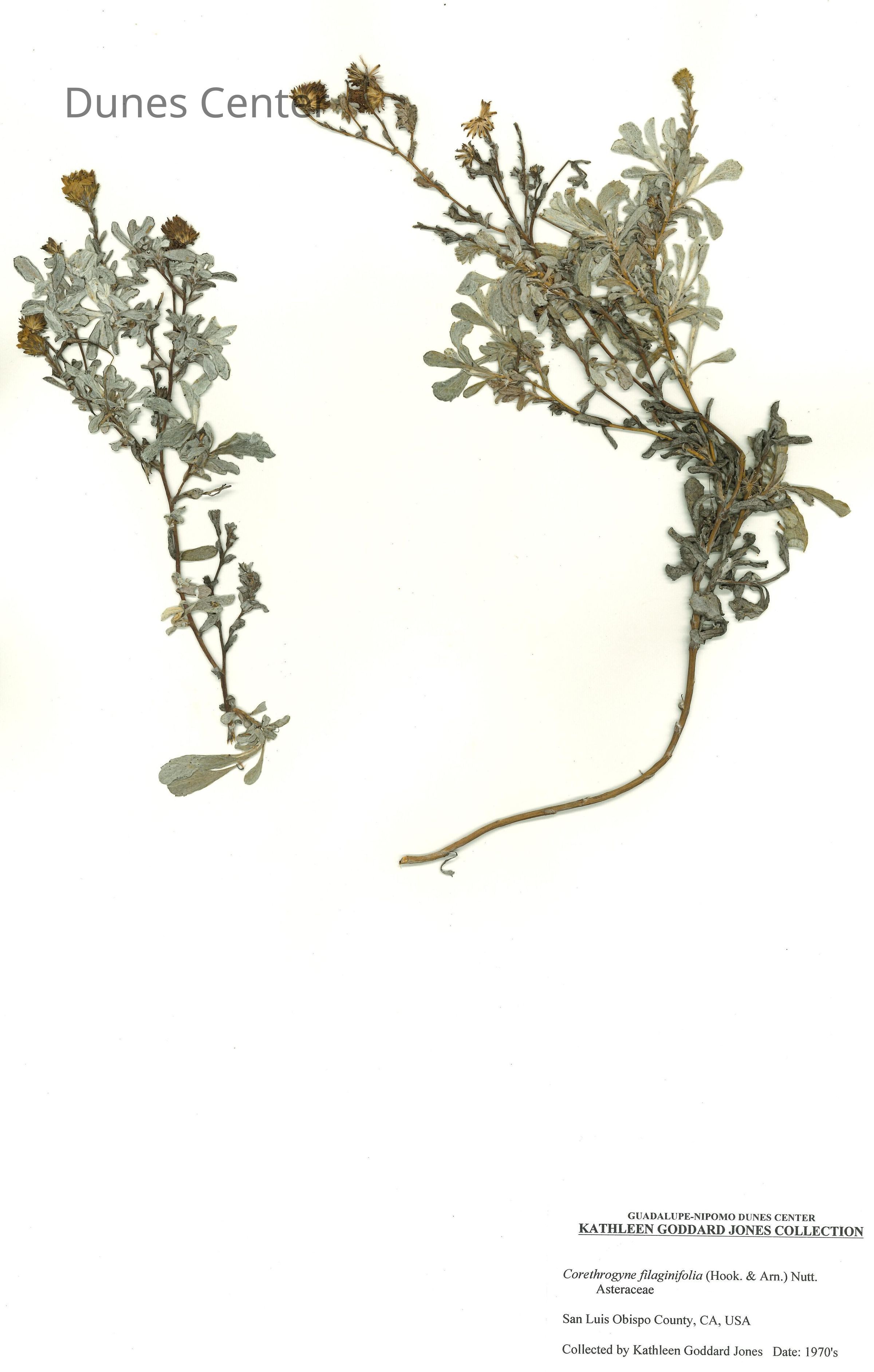 Common Name: Common Sandaster Scientific Name: Corethrogyne filaginifolia (Hook. & Arn.) Nutt. Family: Asteraceae San Luis Obispo County, CA, USA Collected by Kathleen Goddard Jones Date: 1970'sCollection