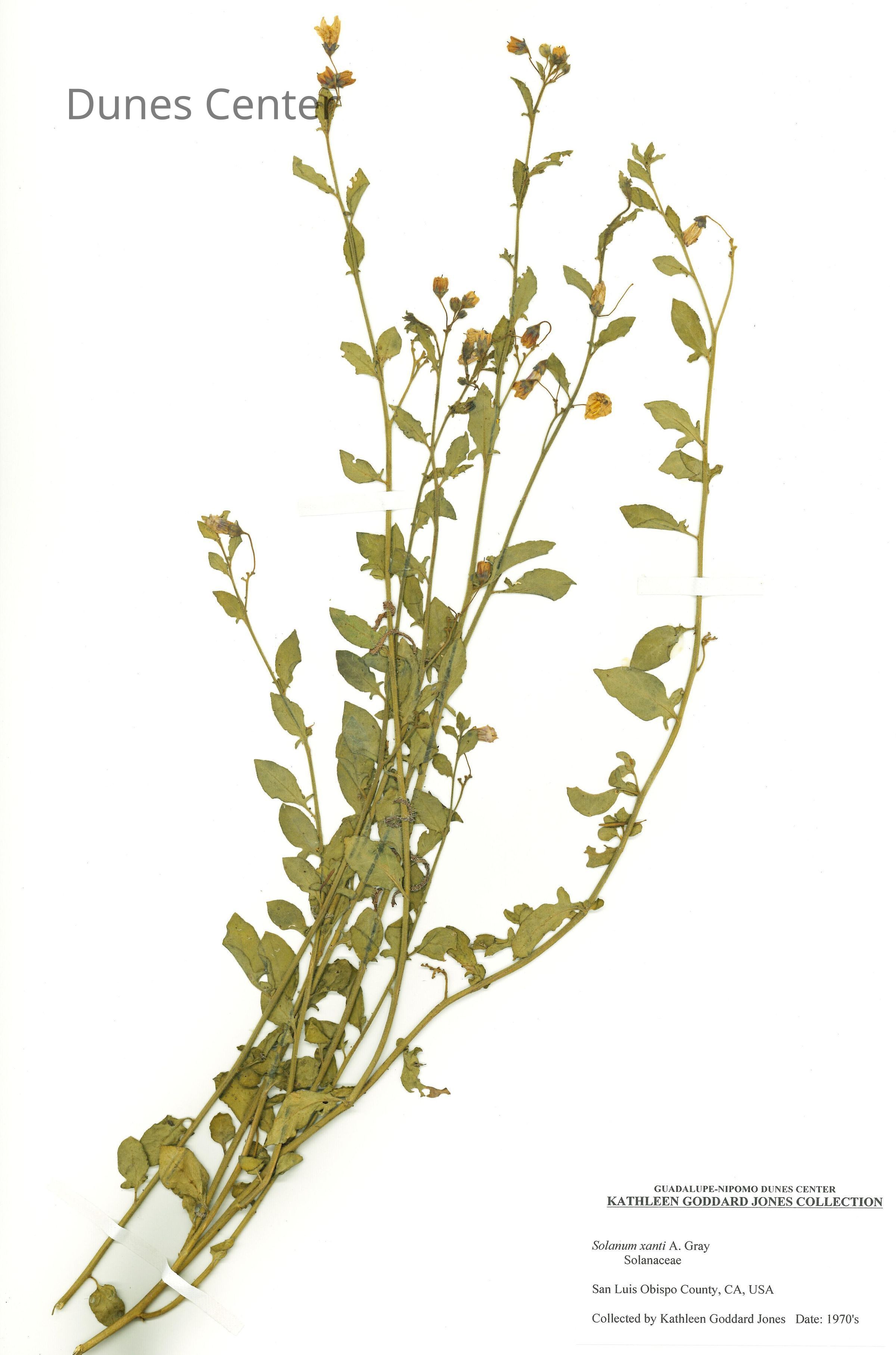 Common Names: Chaparral Nightshade, Purple Nightshade Scientific Name: Solanum xanti A. Gray Family: Solanaceae San Luis Obispo County, CA, USA Collected by Kathleen Goddard Jones Date: 1970'sCollection