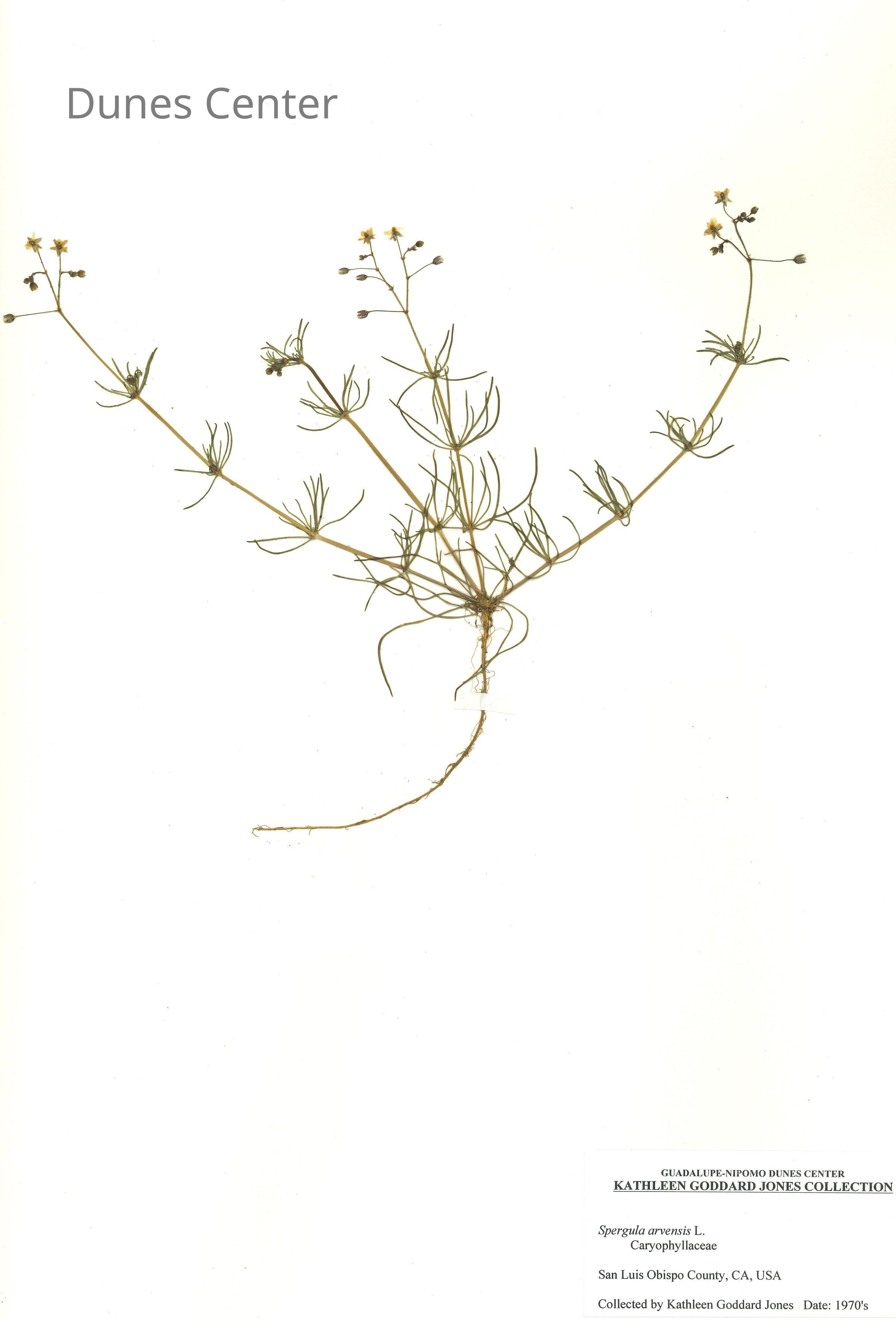 Common Name: Corn Spurry Scientific Name: Spergula arvensis L. Family: San Luis Obispo County, CA, USA Collected by Kathleen Goddard Jones Date: 1970'sCollection