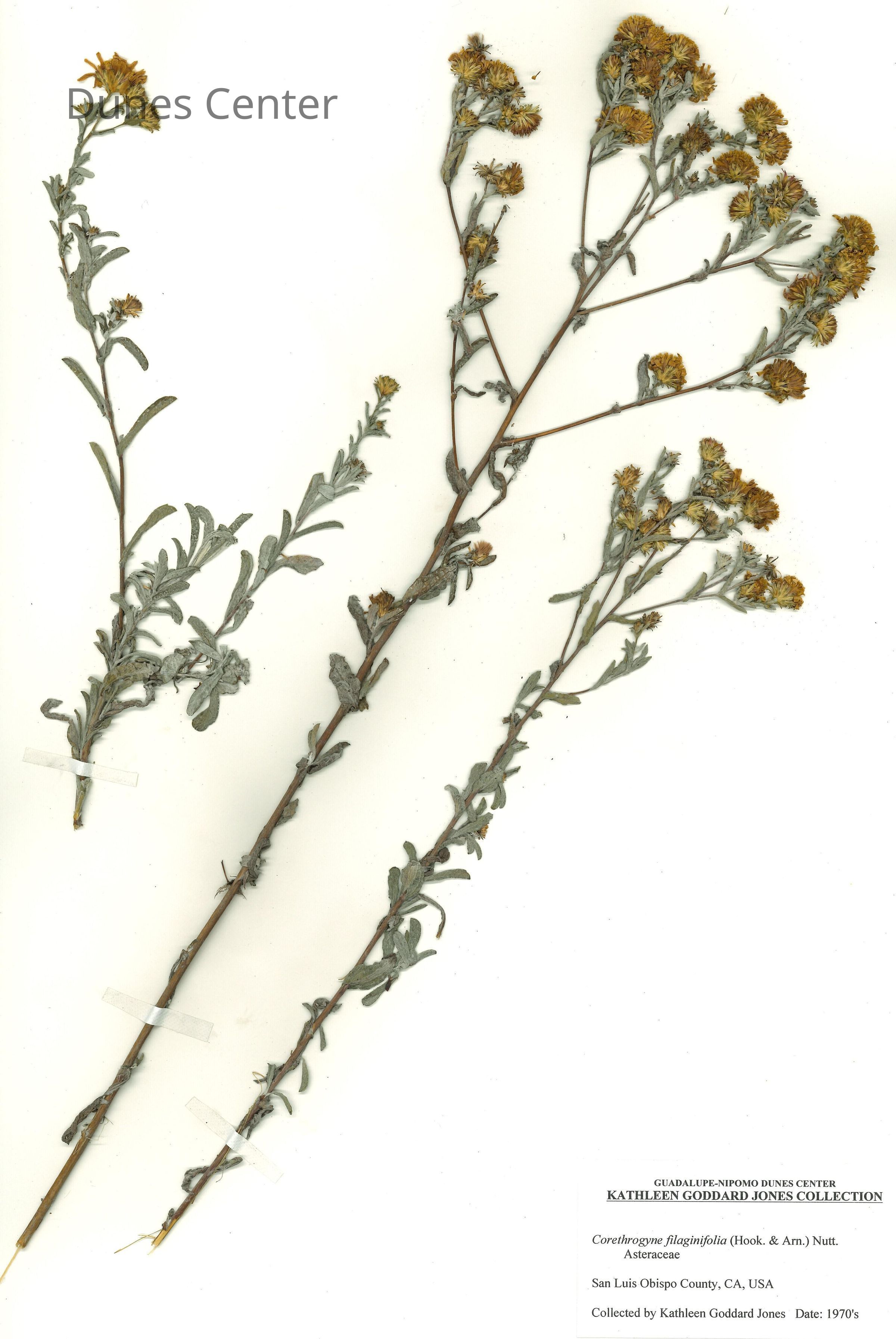 Common Name: Common Sandaster Scientific Name: Corethrogyne filaginifolia (Hook. & Arn.) Nutt. Family: Asteraceae San Luis Obispo County, CA, USA Collected by Kathleen Goddard Jones Date: 1970'sCollection