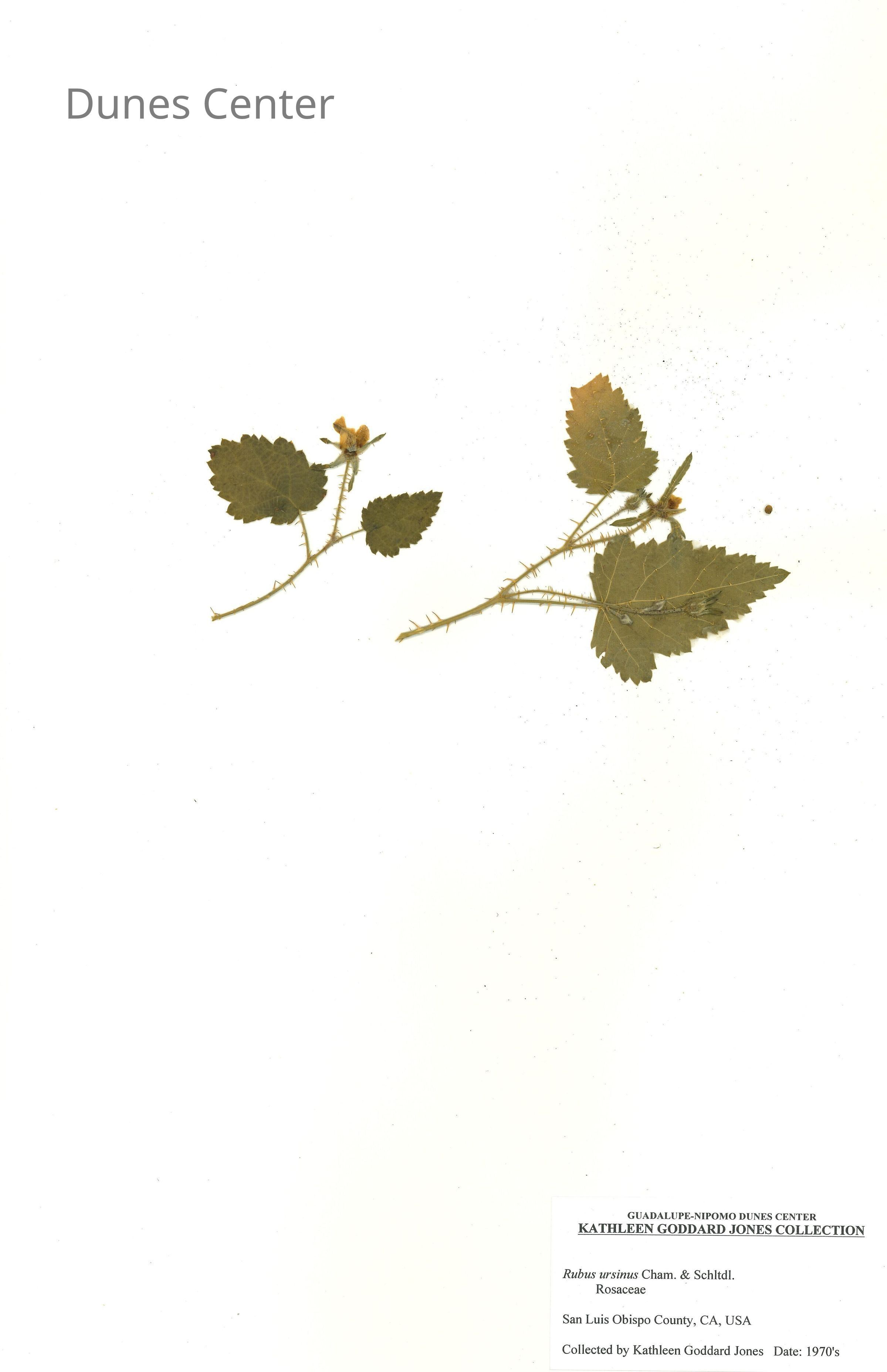 Common Names: California Blackberry, Pacific Blackberry Scientific Name: Rubus ursinus Cham. & Schltdl. Family: Rosaceae San Luis Obispo County, CA, USA Collected by Kathleen Goddard Jones Date: 1970'sCollection