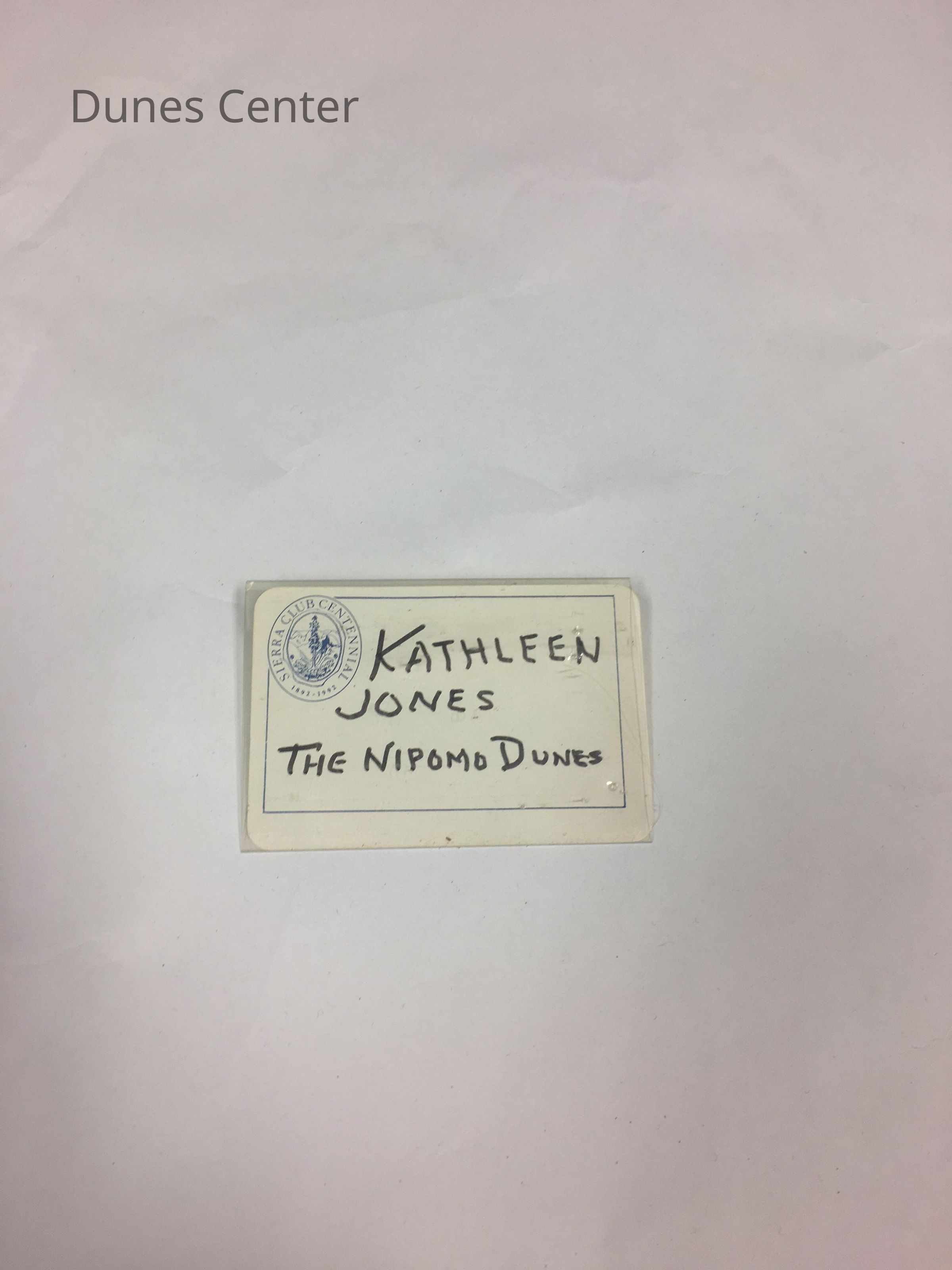 KGJ Nametag representing The Nipomo Dunes with Sierra Club logoEntry/Object ID