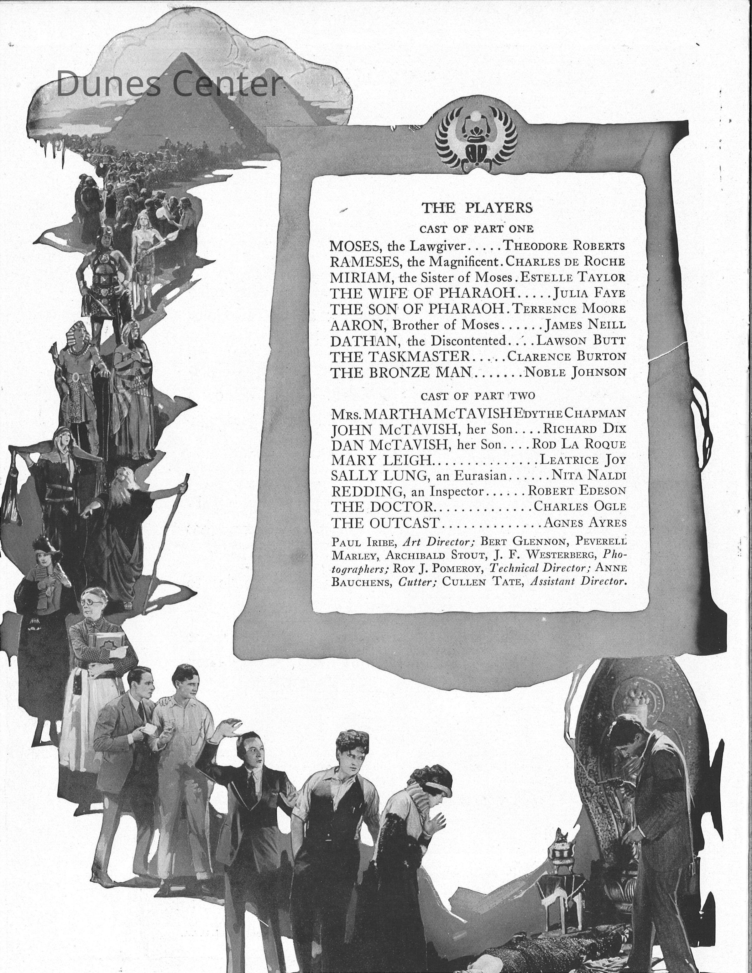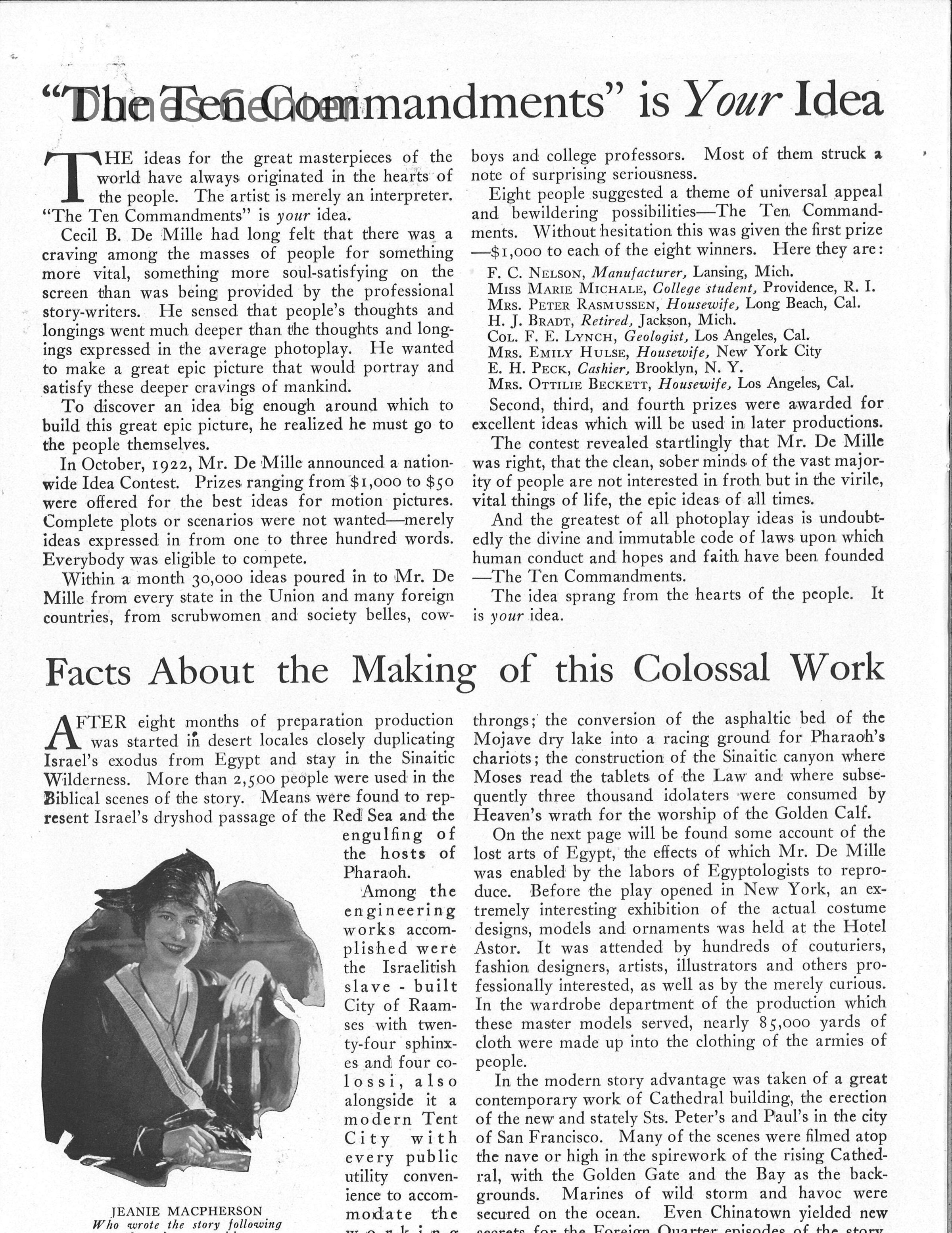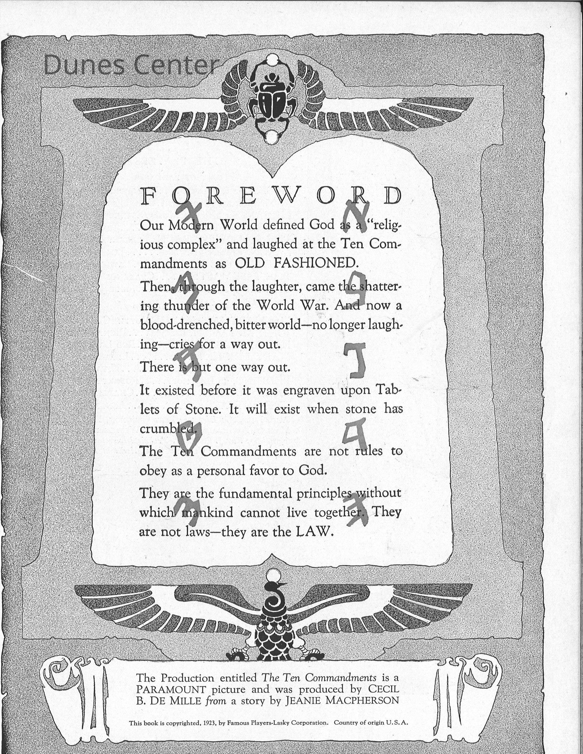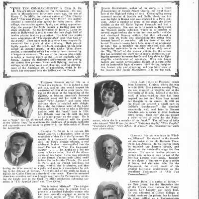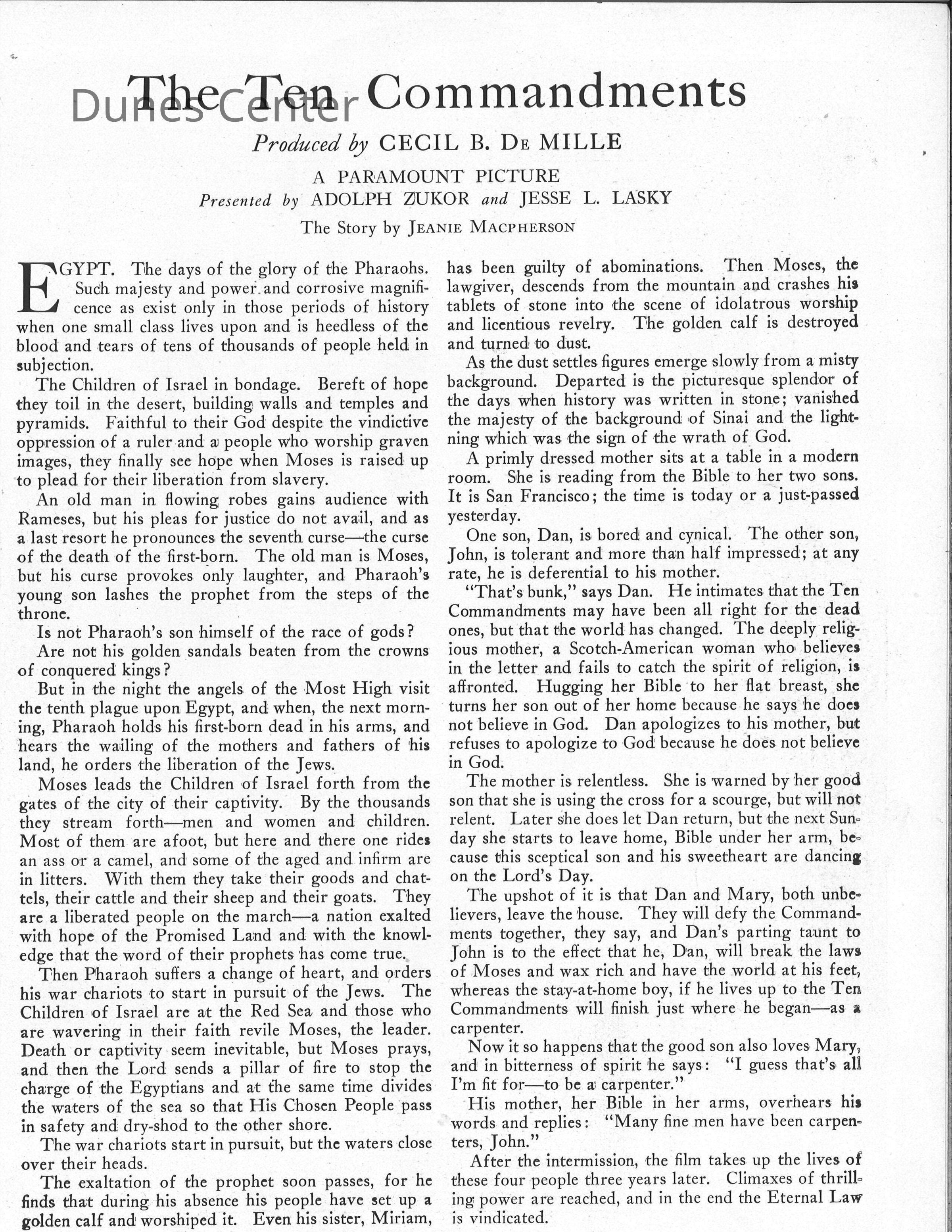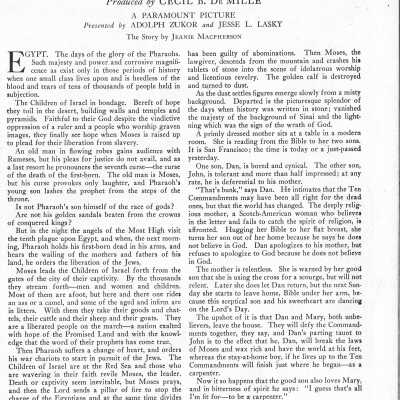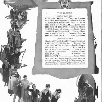 Ten Commandments booklet describing production, cast, and other parts of the movie. Has full list of cast with pictures. Priced 25 cents.Entry/Object ID