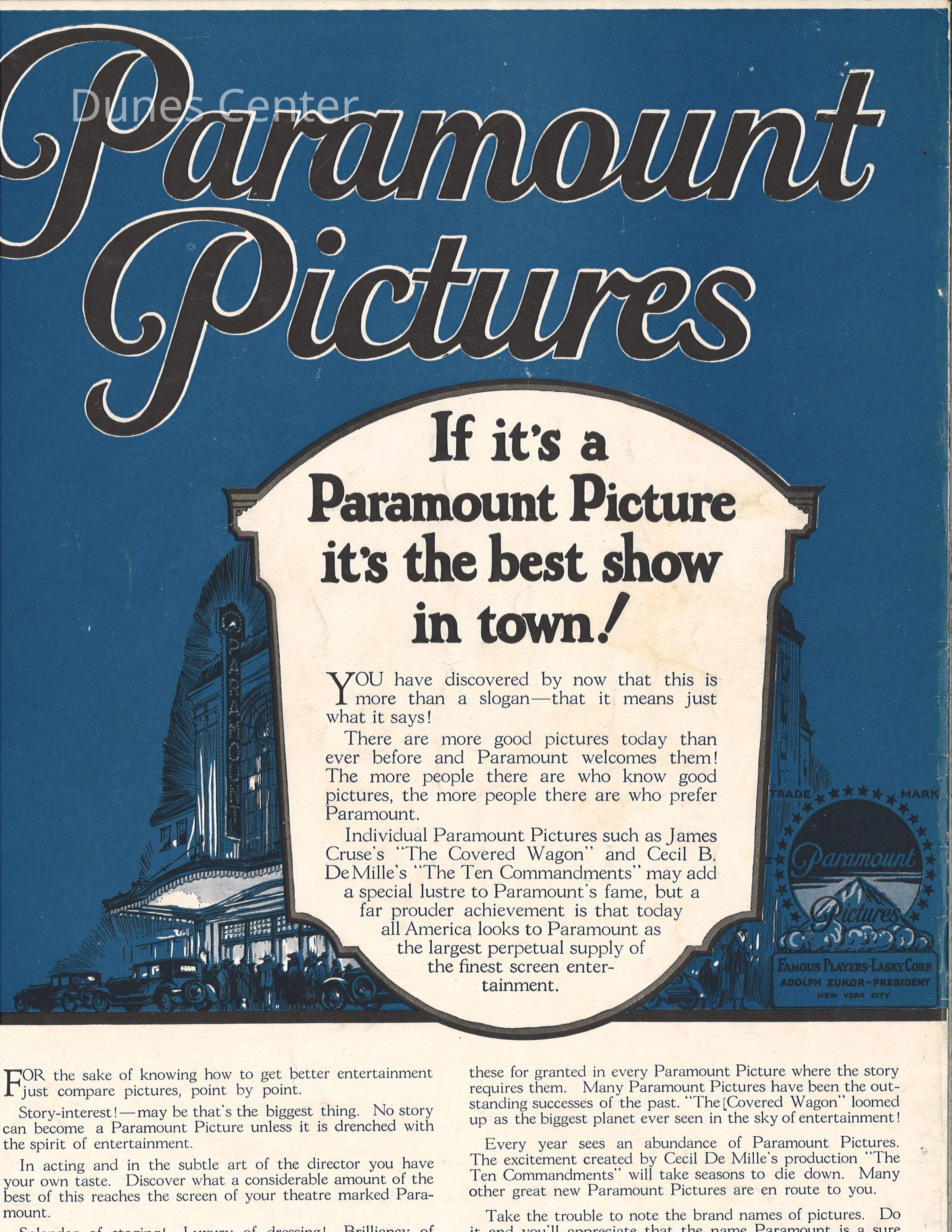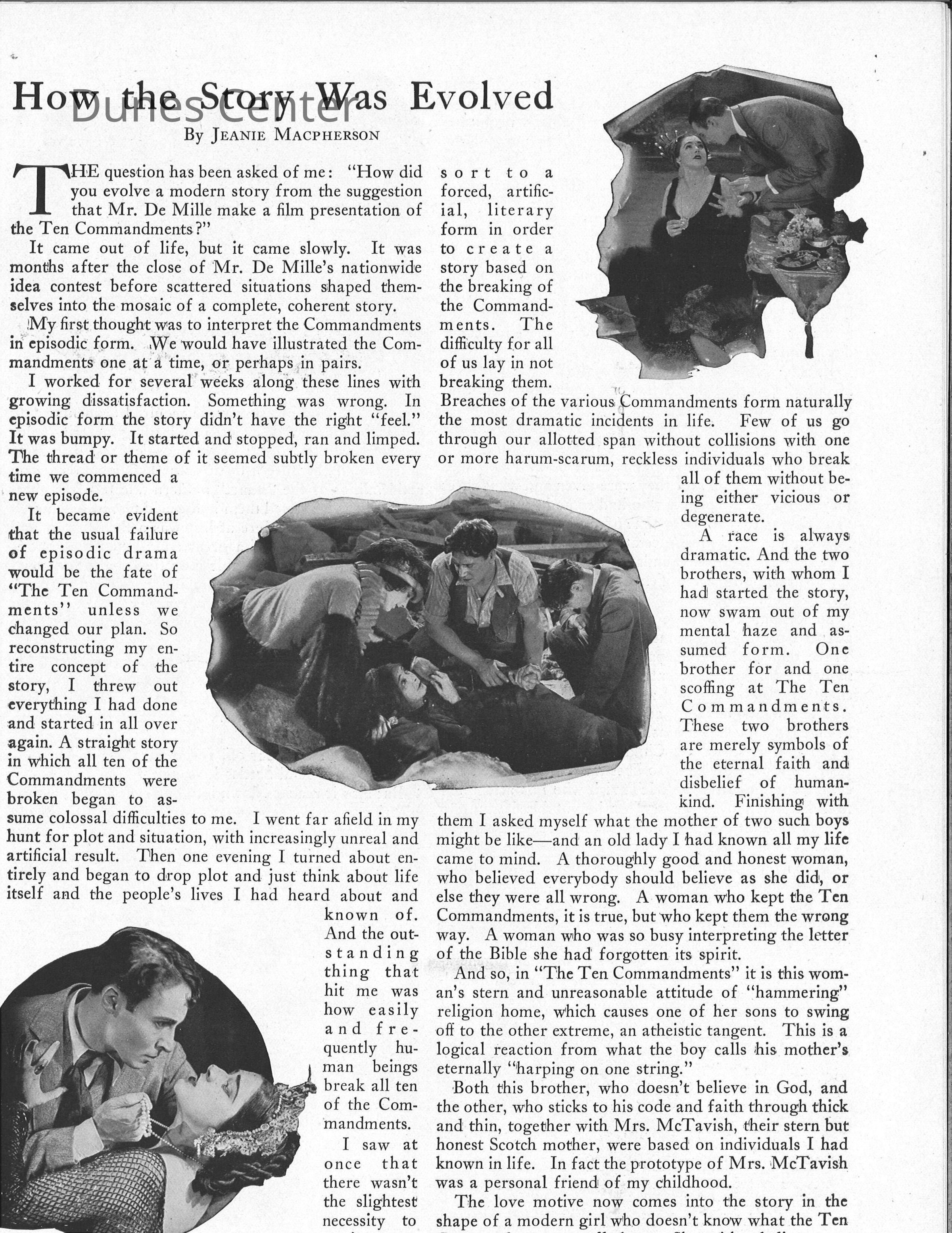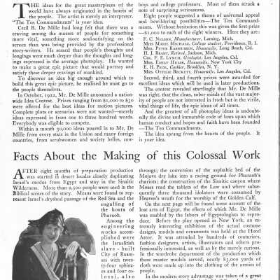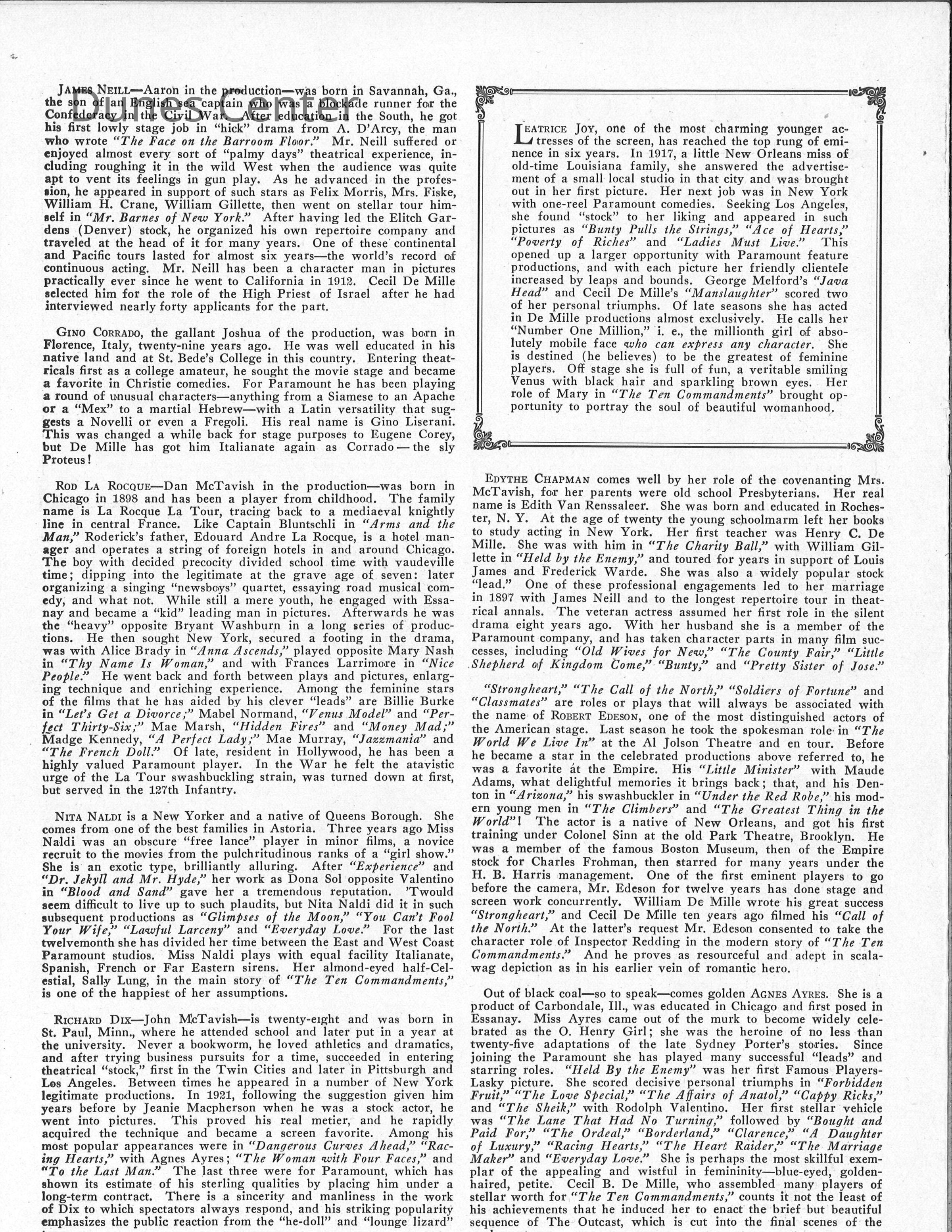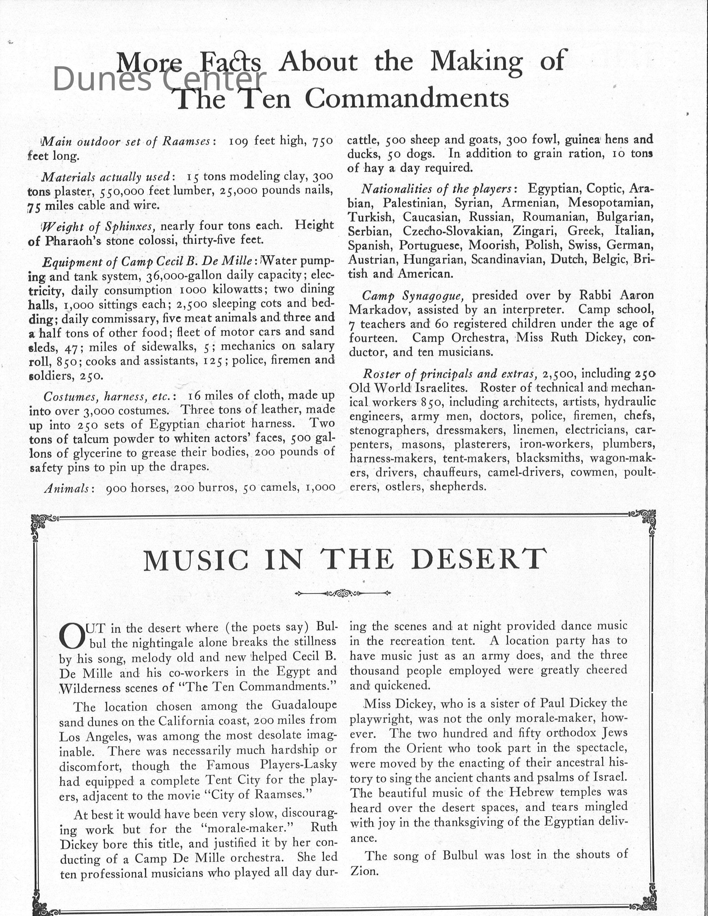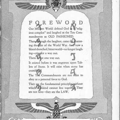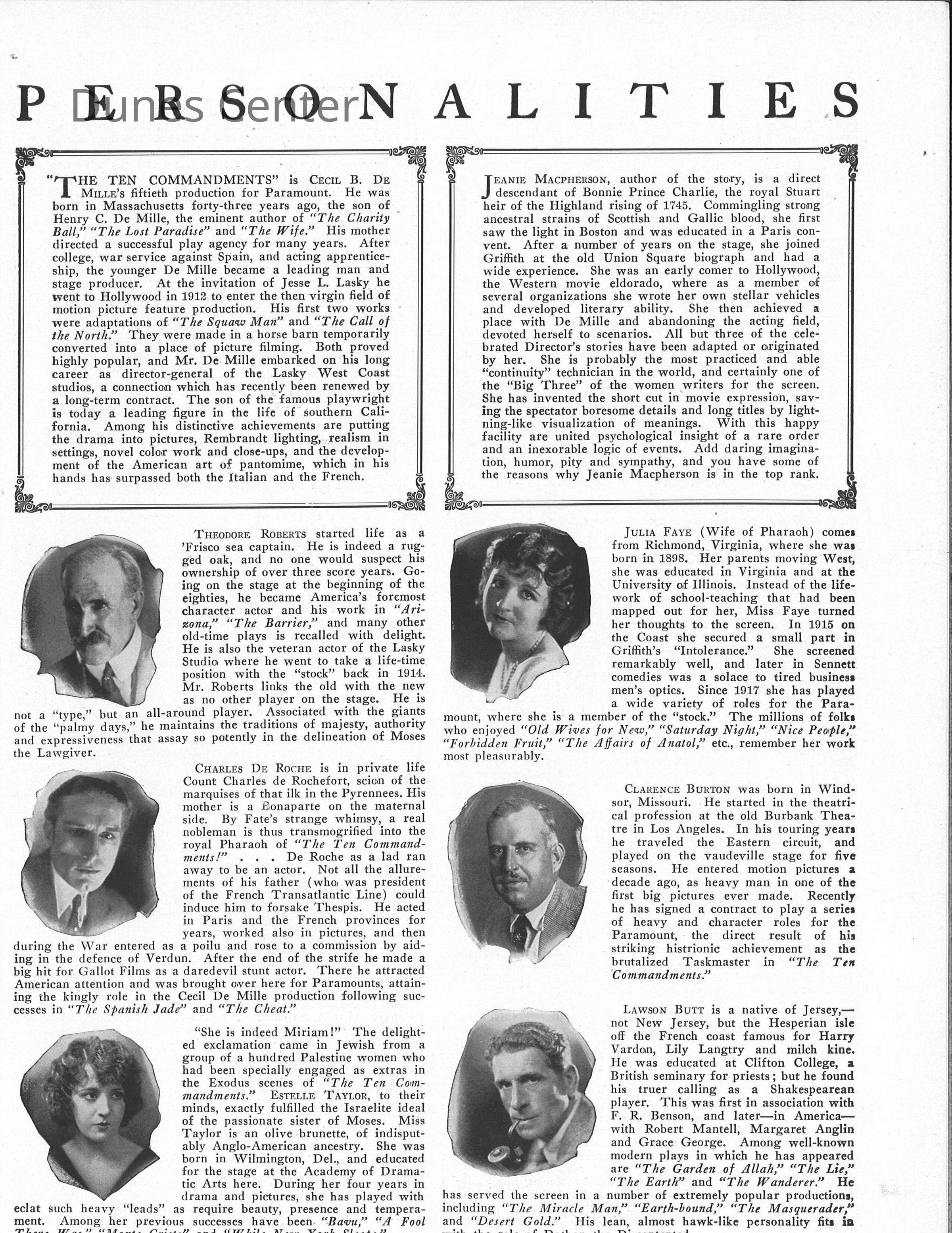Ten Commandments booklet describing production, cast, and other parts of the movie. Has full list of cast with pictures. Priced 25 cents.Entry/Object ID