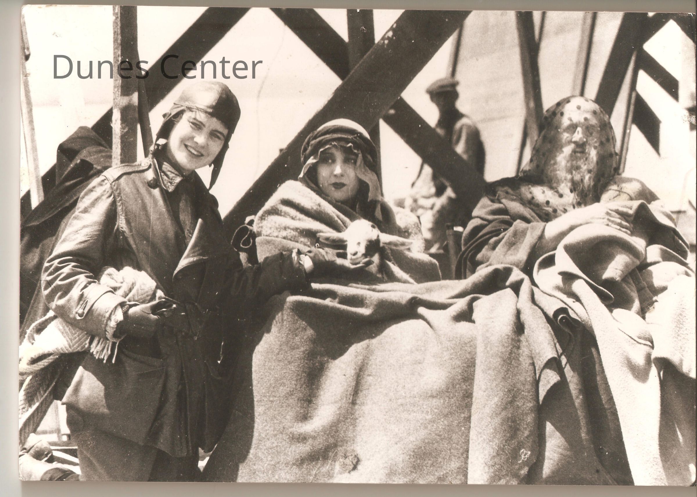 Moses played by Theodore Roberts sits with Mirium played by Estelle Taylor and crew member. Roberts has a scarf layed over his head and Taylor is holding a goat.