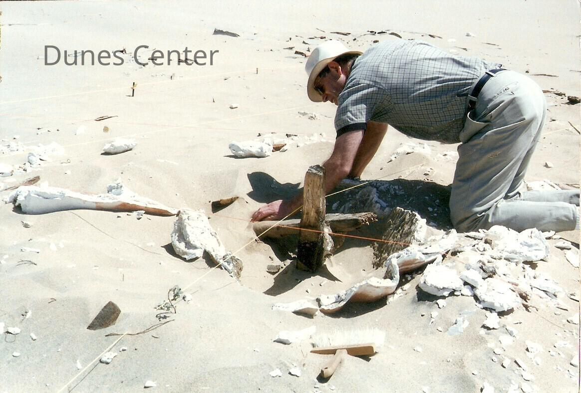 1997 Ten commandments excavation. Unearthing burried wooden and plaster pieces.