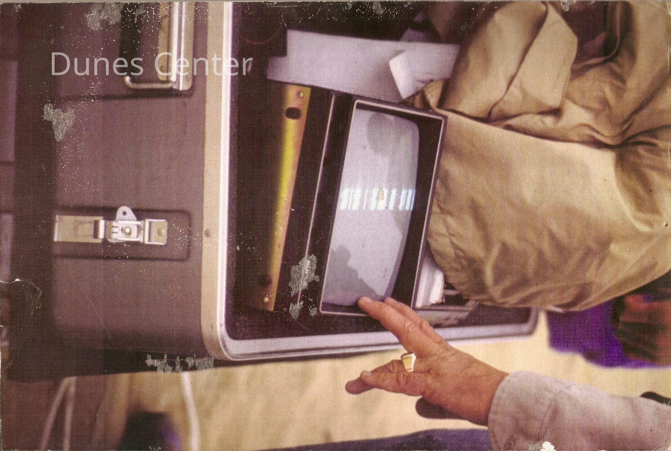 1997 Ten Commadnments excavation. Using sonar equipment to locate set pieces.