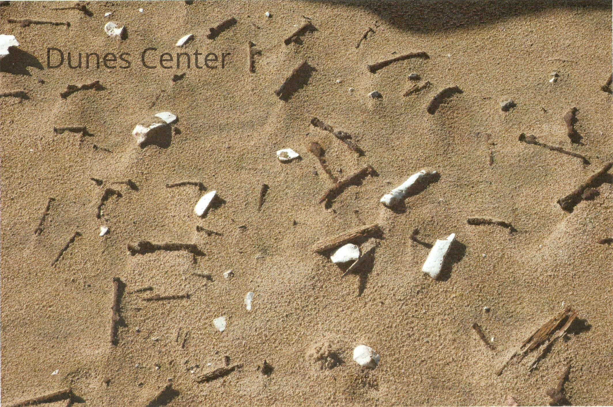1997 Ten Commandments excavation. Small broken set pieces lying on surface of the dunes.
