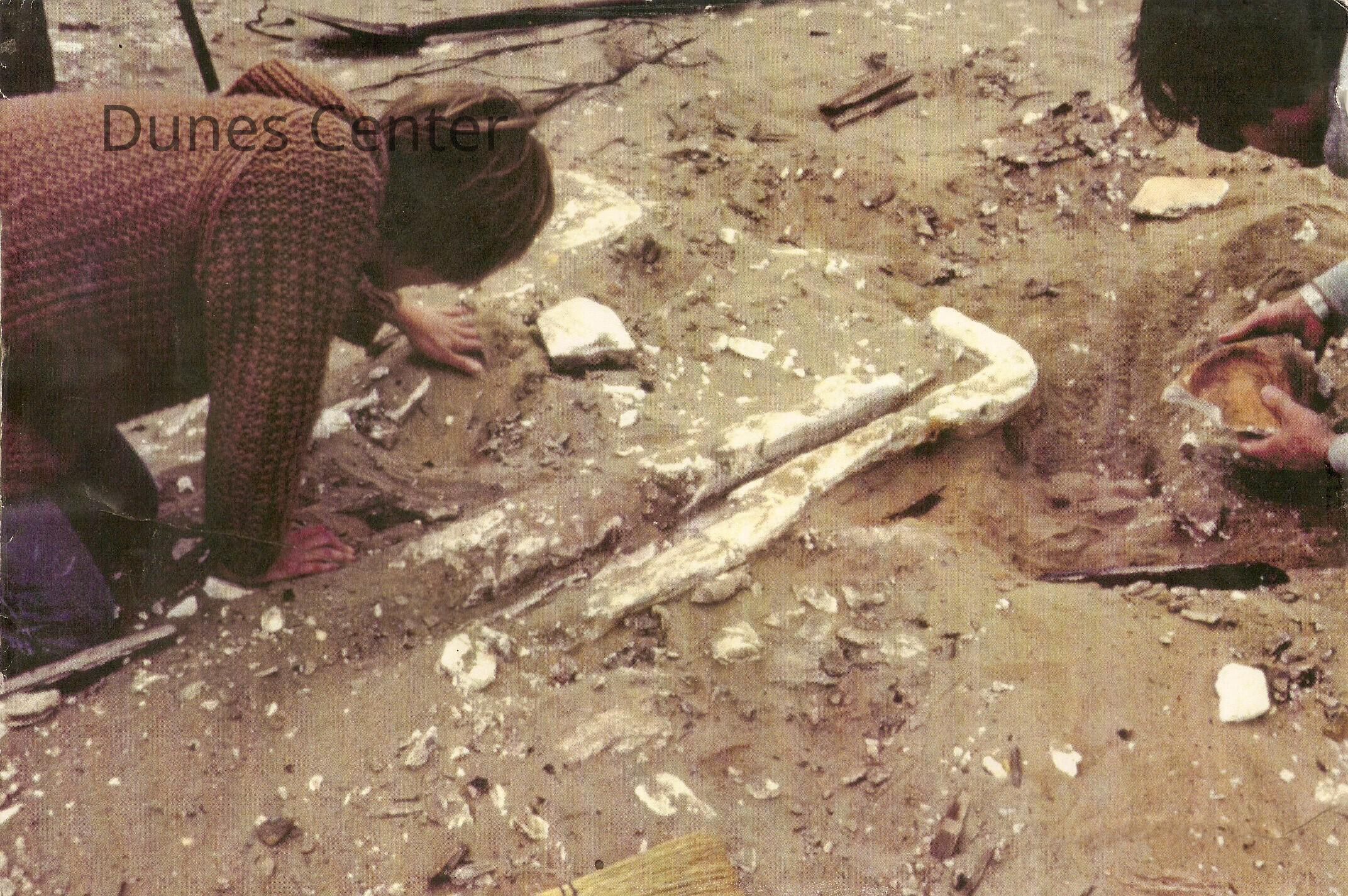 1997 Ten Commandments excavation. Archeologists digging up large plaster pieces.