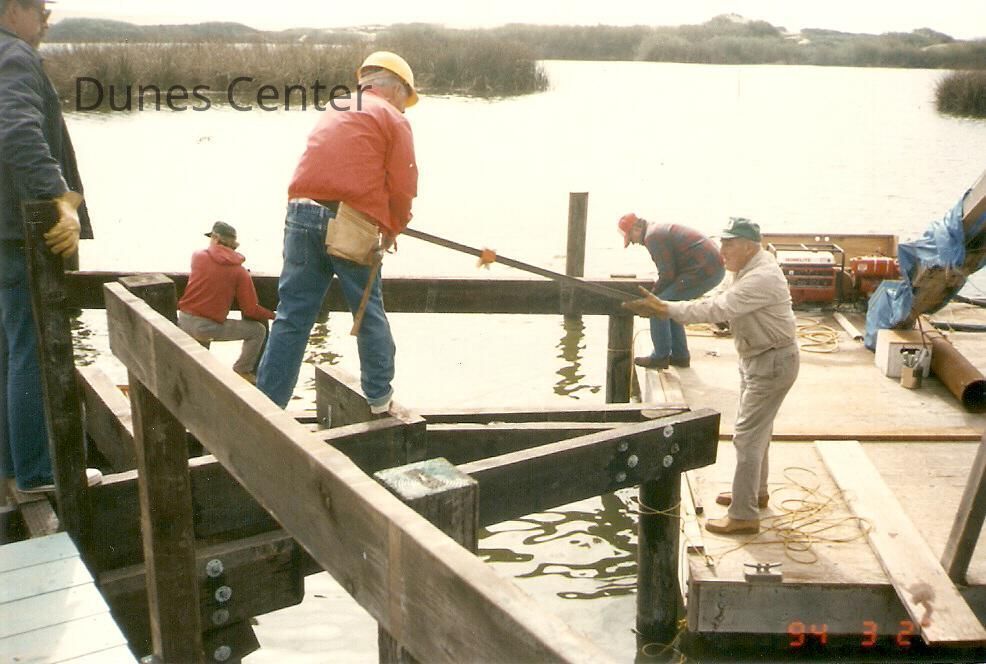 Bridge construction 1994. Ray Folckm Chuck Warner, Jim Neuschwander, Roger Hamm, and Dick Williams.