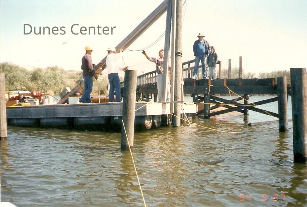 Bridge construction 1994. Roger Hamm, Milt Webb, Joe Manion, Ray Folch, and Nancy Warren.