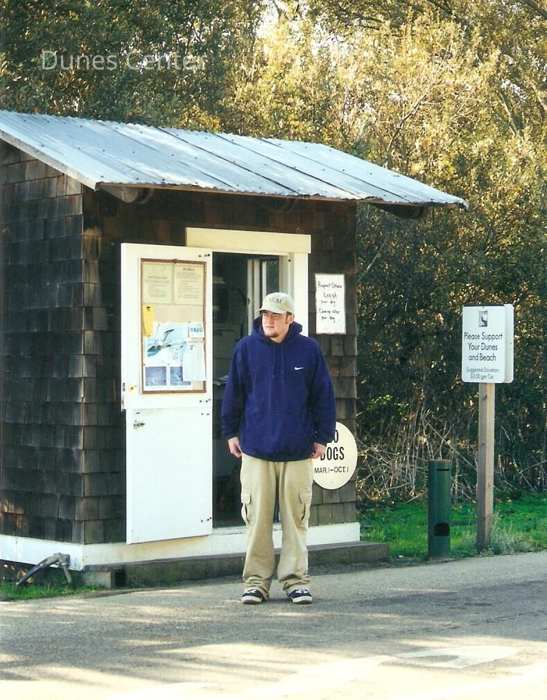Center for land management staff photos 12/2000. David Friesen greets visitor at Main St. entrance.