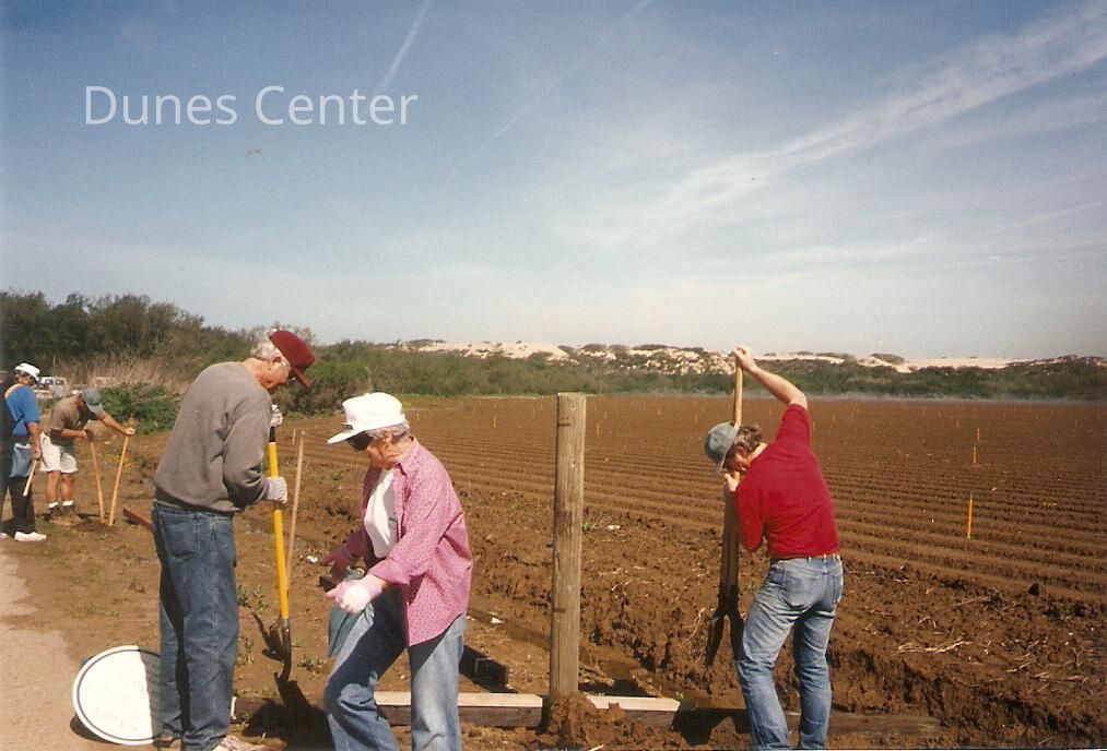 Installation of signs on beaches 3/1996. Frank Perez, Pete St. John, Don Wood, Gerda Perez, and Chuck Warner at Oso Flaco Lake.