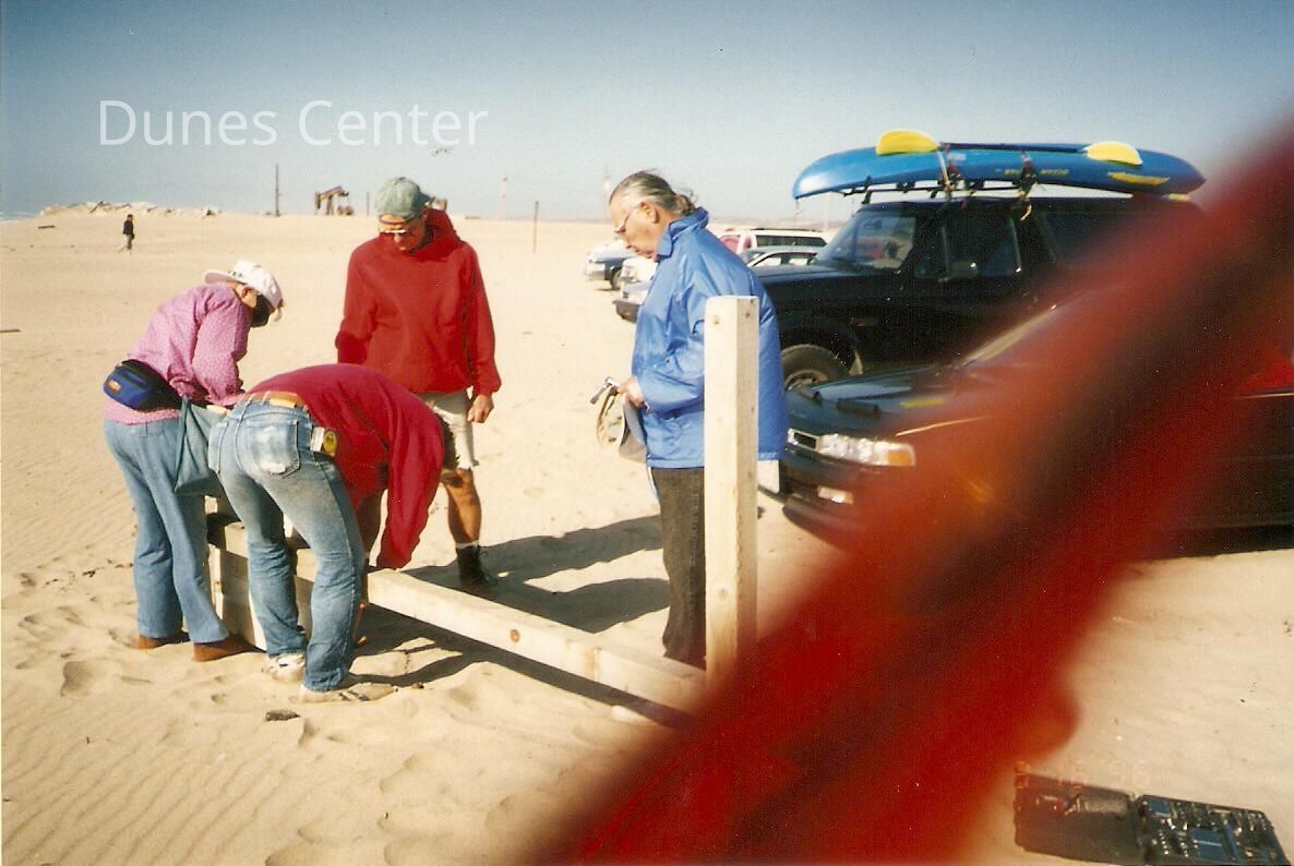 Installation of signs on beaches 3/1996. Gerda Perez, Chuck Warner, Pete St. John, and Frank Perez at Guadalupe Beach.