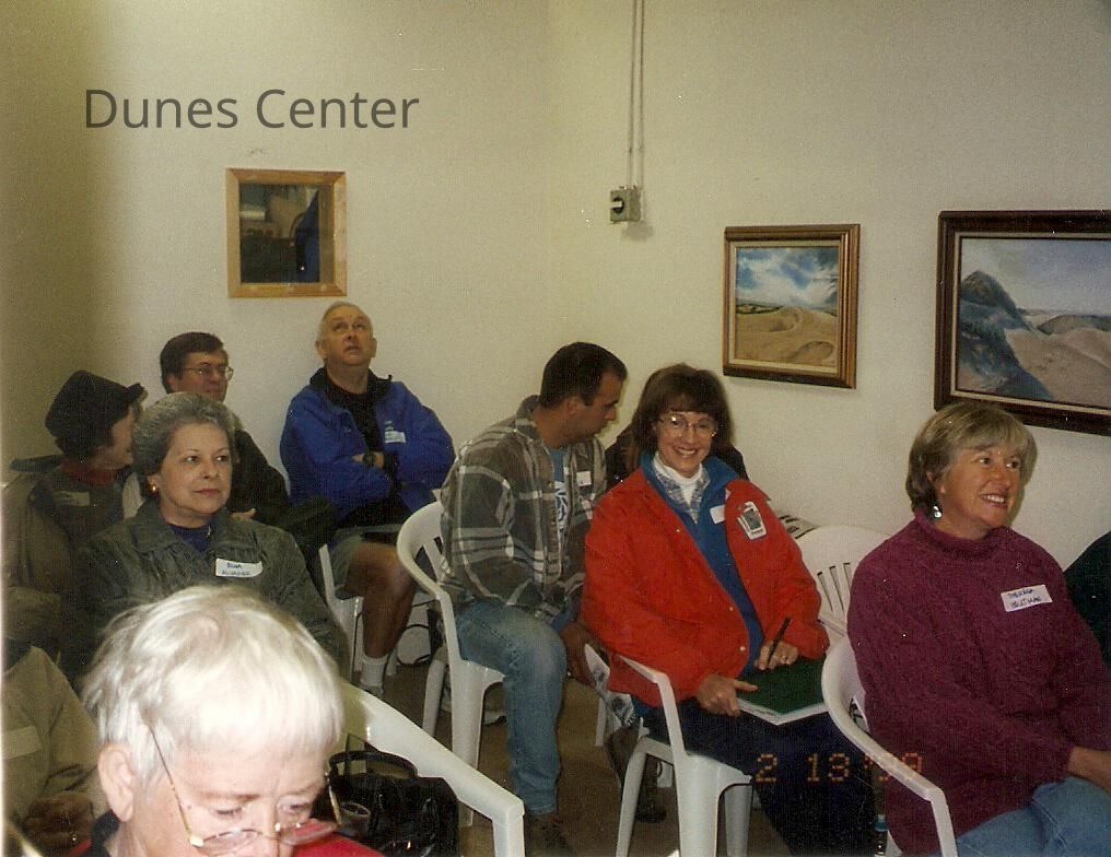 Dunes Discovery Center theater docent training. Florence Mathews, Elva Alvarez, Marilyn Steele, and Theresa Houtman 2/99.