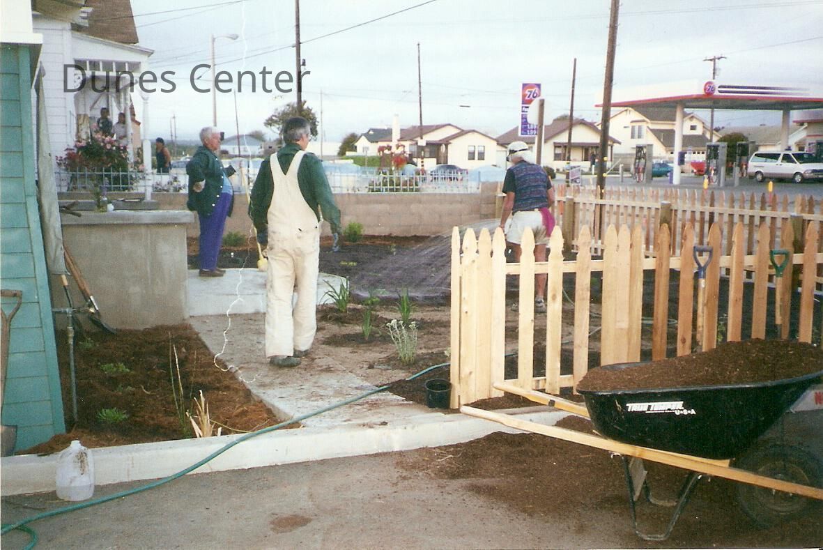 Dunes Discovery Center garden Al Naydol's plant class landscaping front yard 4/01. Florence Mathews, Al Naydol, and Bill Deneen.