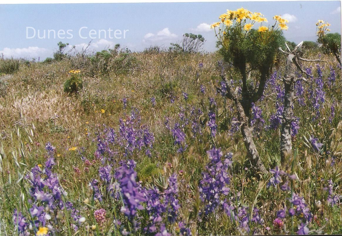 April 1998, Don Wood, Delphinium parryi subspecies Blochmaniae, Dune Larkspur, Coreopsis Gigantea, Giant Coreopsis on Coreopsis Hill. 4" x 6" color photographCollection