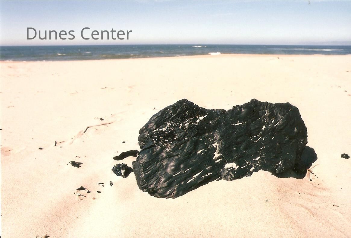 Guadalupe Dunes Preserve aka Rancho Guadalupe Beach County Park, A chunk of rock-hard oil broken off of underwater cliffs off Mussel Rock and washed up onto Guadalupe Beach February 1995