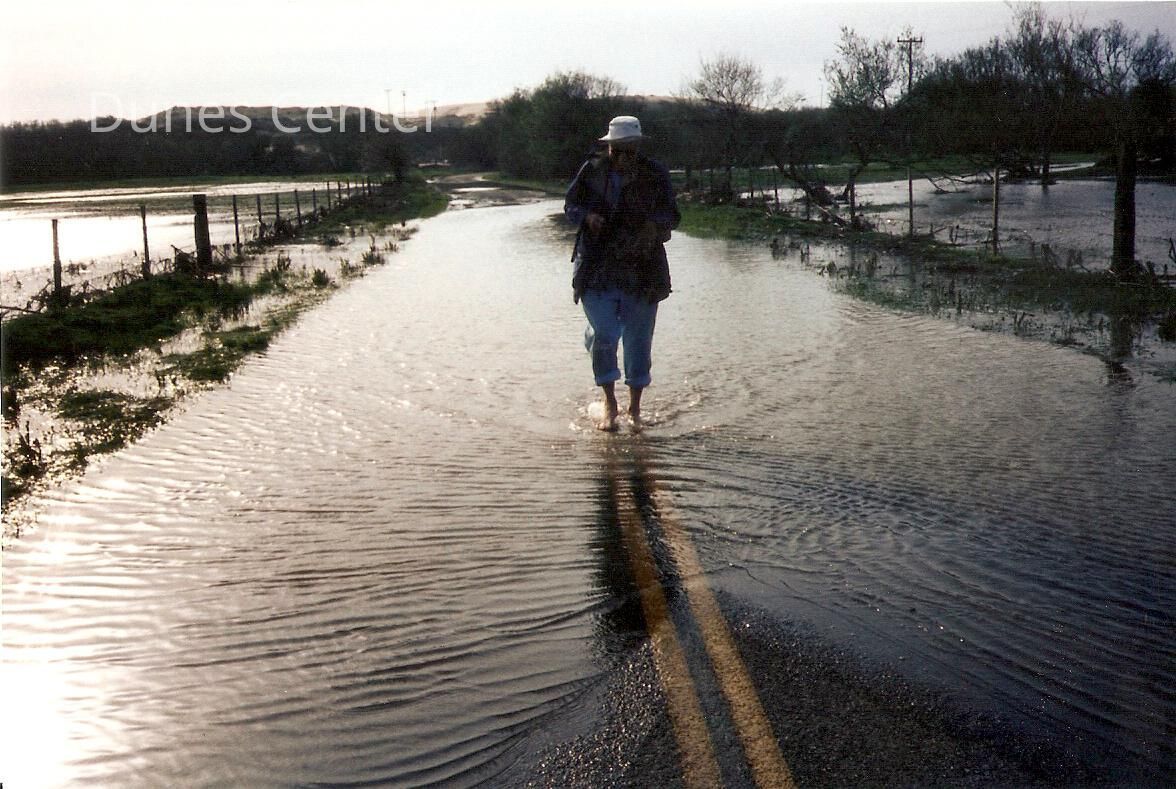 Guadalupe Dunes Preserve aka Rancho Guadalupe Beach County Park. "Main Street Route 166 through Minetti Maretti land during El Nino" February 1998