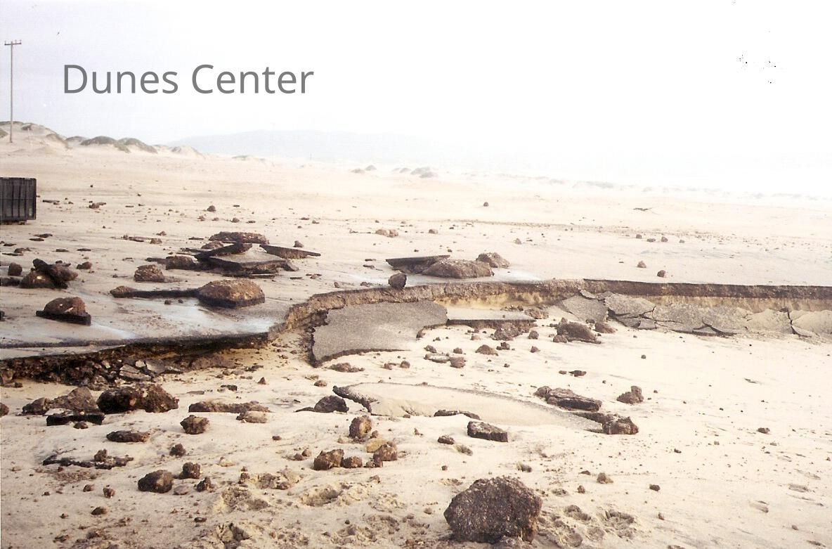 Guadalupe Dunes Preserve aka Rancho Guadalupe Beach County Park. "El Nino destruction at Guadalupe Beach parking lot" February 1998