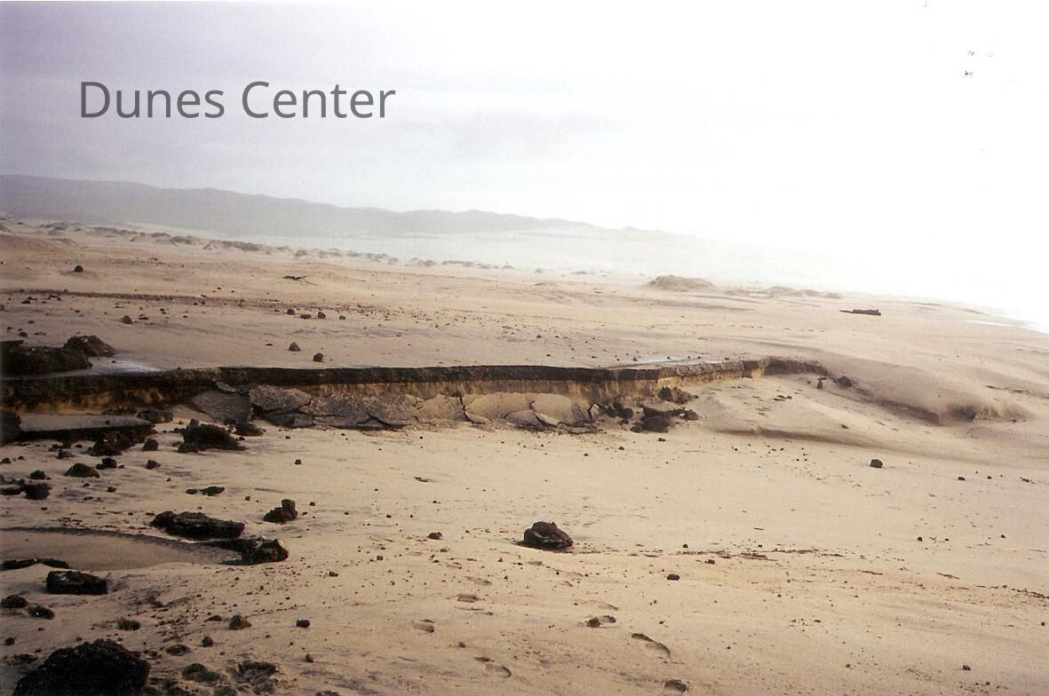 Guadalupe Dunes Preserve aka Rancho Guadalupe Beach County Park. "Guadalupe Beach parking lot broken up by El Nino waves" February 1998