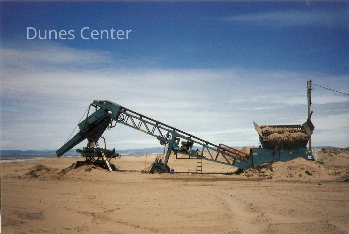 Guadalupe Dunes Preserve aka Rancho Guadalupe Beach County Park. Photograph with post-it note asking "What is this thing? Cleaning sand at Torch oil site" and labeled "Guadalupe Beach during El Nino. Torch oil sand cleaning equipment" February 1998