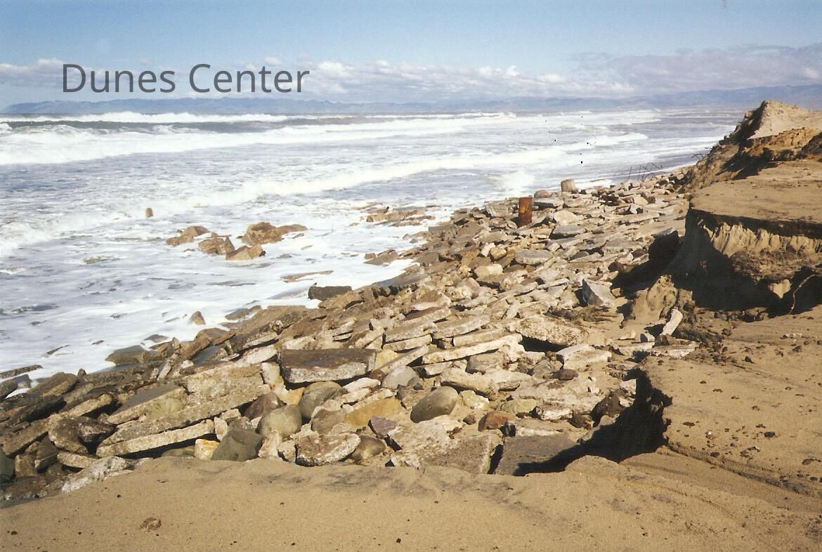 Guadalupe Dunes Preserve aka Rancho Guadalupe Beach County Park. "El Nino destruction of breakwater at Guadalupe Beach" February 1998