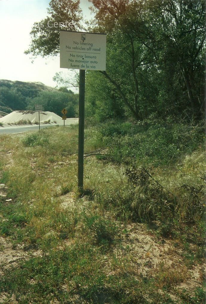 Guadalupe Dunes Preserve aka Rancho Guadalupe Beach County Park. "New Guadalupe Nipomo Dunes Preserve sign along road to Guadalupe Beach" April 1996