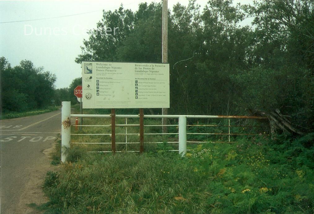 Guadalupe Dunes Preserve aka Rancho Guadalupe Beach County Park. "Guadalupe Nipomo Dunes Preserve entrance sign" April 1996