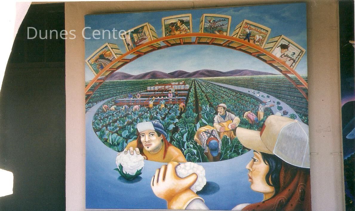 Mural by famed muralist, Judy Baca, on City Hall, 918 Obispo Street, Guadalupe. Undated 4" x 6" color photograph.Collection