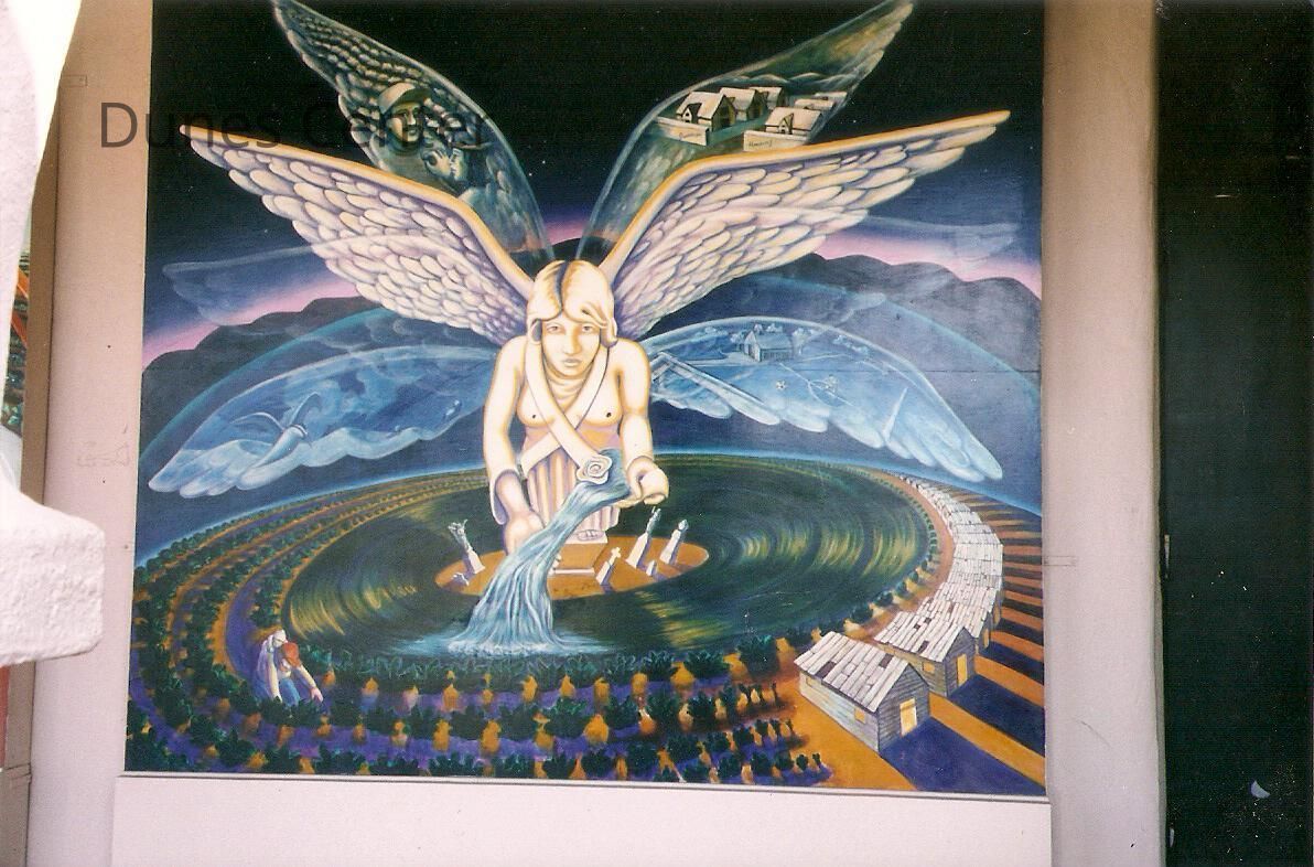 Mural by famed muralist, Judy Baca, on City Hall, 918 Obispo Street, Guadalupe. Undated 4" x 6" color photograph.Collection
