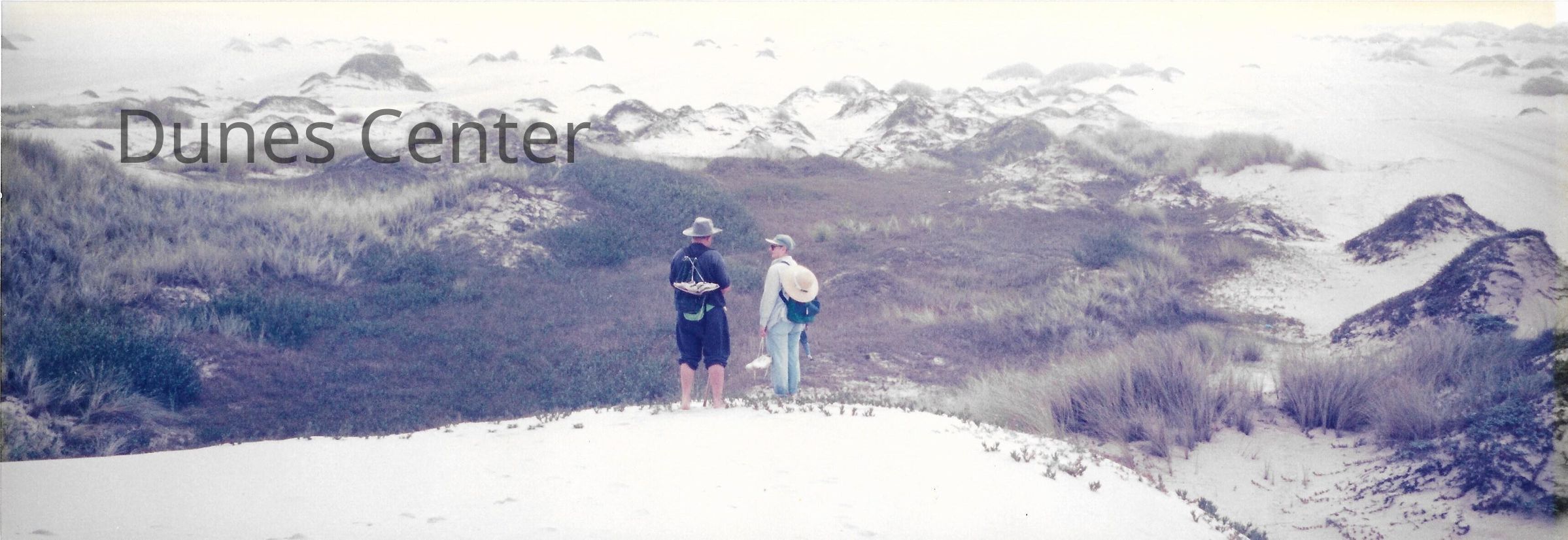 Hikers in Dunes, Note on folder: "removed from display in storage in August 2016" - Undated 4" x 11.5" color photographEntry/Object ID