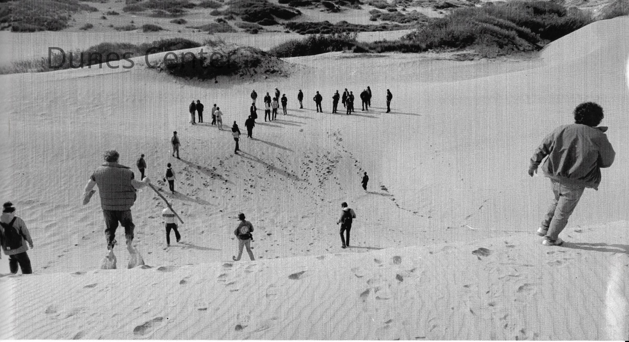 Hikers in Guadalupe- Nipomo Dunes lead by Kathleen Goddard Jones, Undated 4" x 11.5" color photograph
