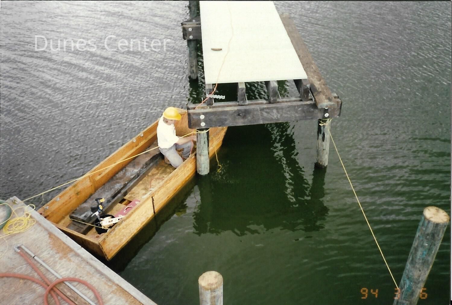 Construction of boardwalk over Oso Flaco Lake, 1994, 3.5" x 5" color photograph