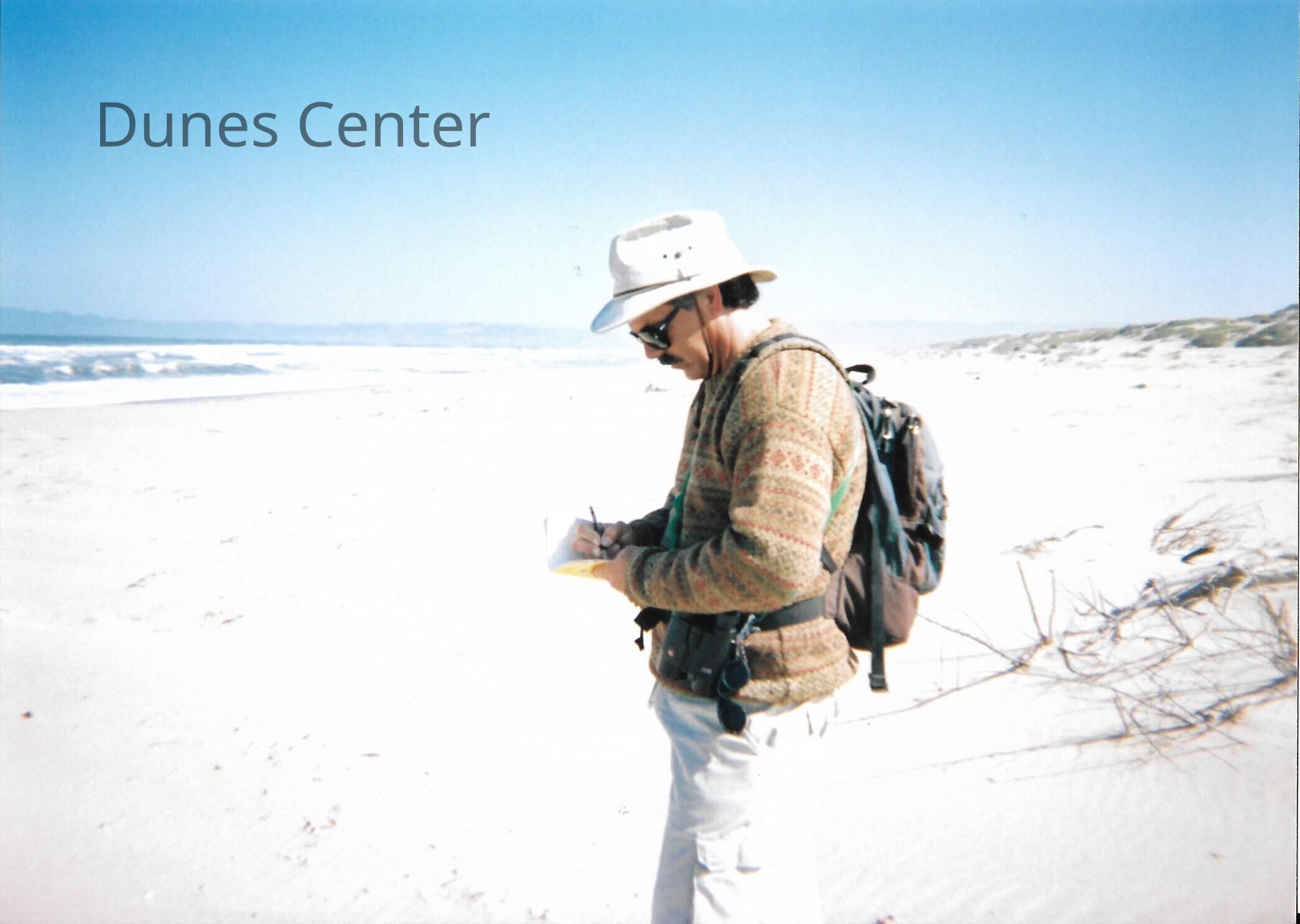Man writing on beach in the Dunes, 8/29/2005 - 5" x 7" color photographEntry/Object ID