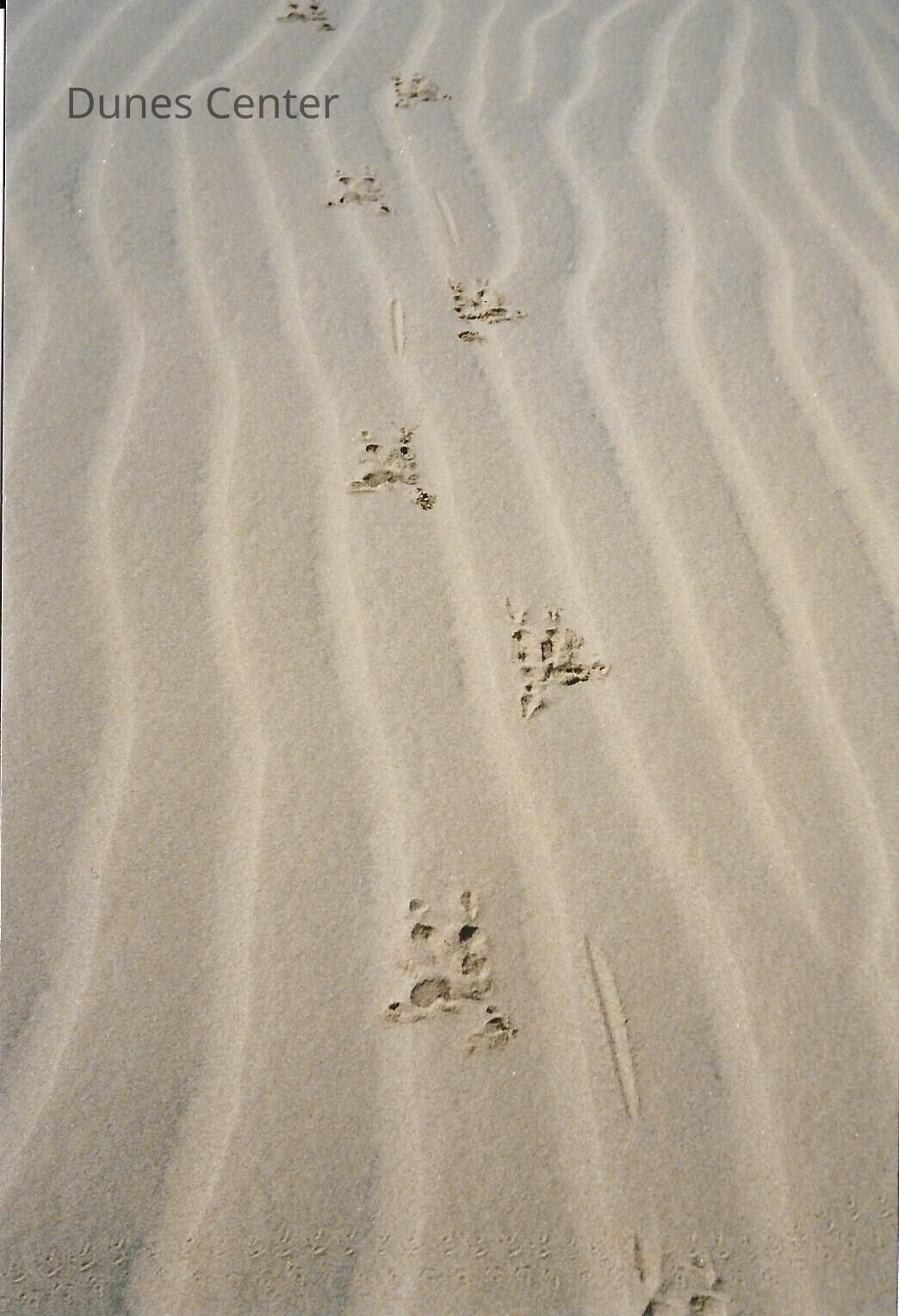 Great Blue Heron Tracks in Sand at Callender Dunes seen on hike lead by Kathleen Goddard Jones, in photo album - Undated 3.5" x 5" color photographEntry/Object ID