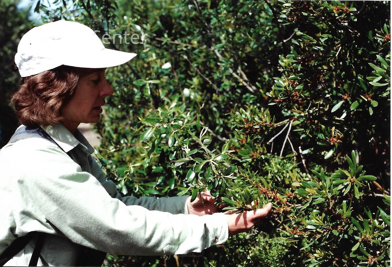 Educational Hike at Oso Flaco with Kathleen Goddard Jones, comparison of Willow vs Wax Myrtle Trees, in photo album - Undated 3.5" x 5" color photographEntry/Object ID