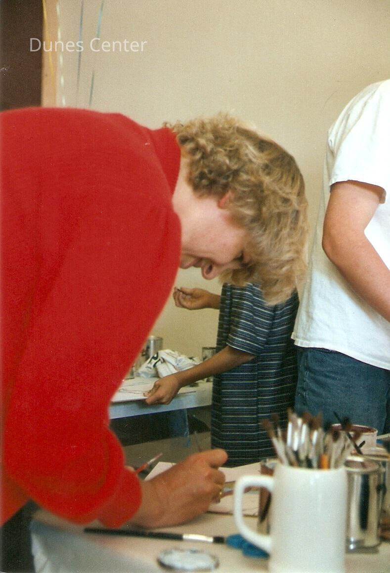 Dunes Discovery Center grand opening 10/13/96. Gail Hoffman painting mural square.