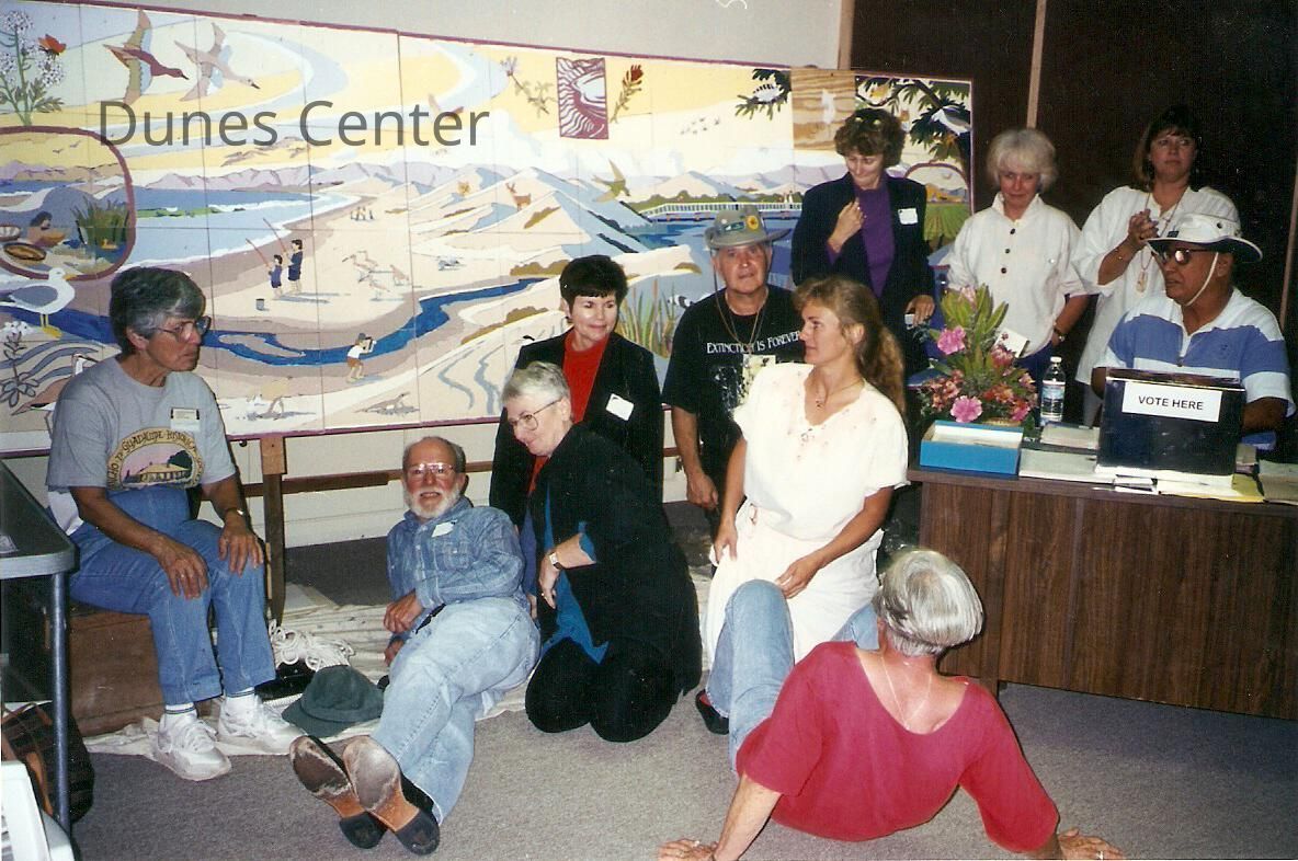 Dunes Discovery Center grand opening 10/13/96. The end of the day with most of the mural painted. Shirley Boydstan, David Levesque, Carla Levesque, Sue McGinty, Hal Schartz, Jeanne Sparks, Gerda Perez, Kathy Schartz, Randy Ball, Karen Wod, Frank Perez.Collection